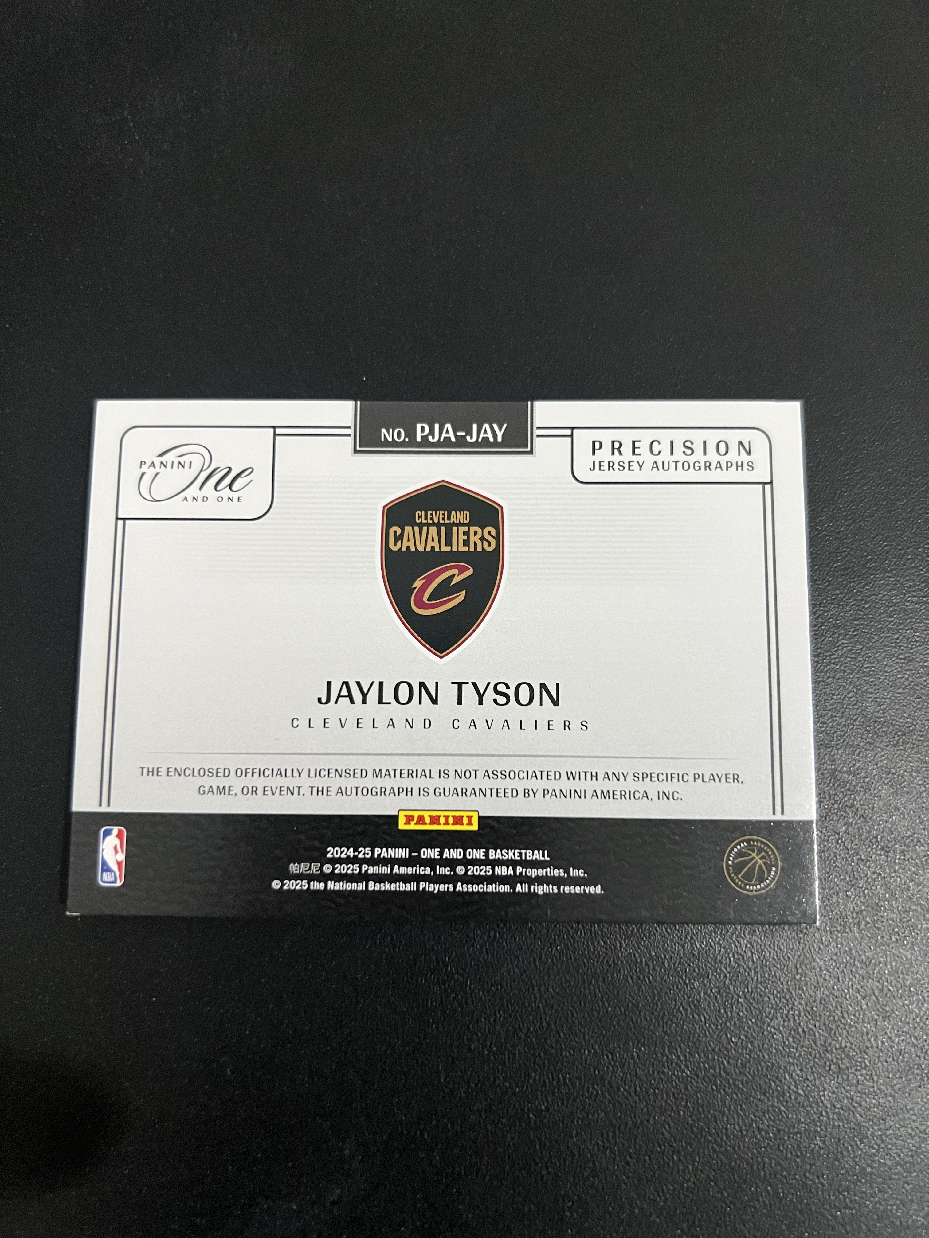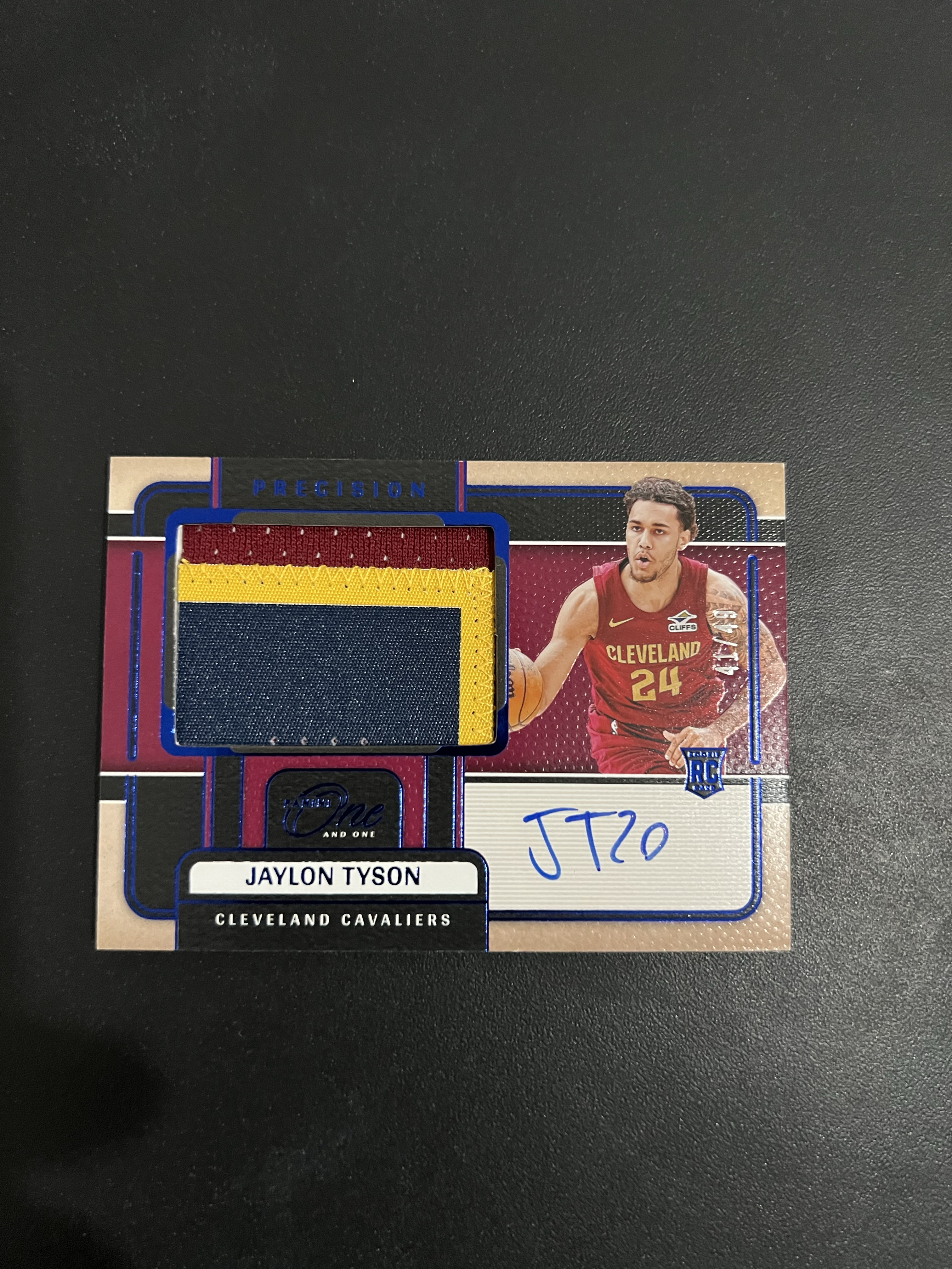 2024-25 Panini One and One Jaylon Tyson RC 骑士 新秀 杰隆 泰森 三色球衣切割 签字 卡签 /49编 蓝平行 RPA PJA 大窗 卡品如图