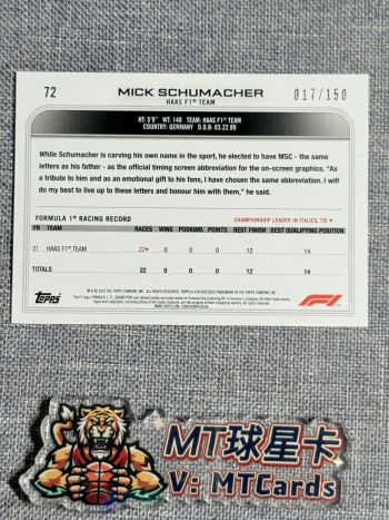 MT拍卖,MT球星卡代卖,有任何问题联系站内私信,卡品如图,目前成交过两万多标没有发生问题,普快中通全国15。如遇问题我将尽全力配合,建议顺丰。拍卖结束后3天内付款,否则投诉,望珍惜自己的账号,十分感谢!代拍代卖以及各种需求咨询客服微信:MTCards,店主玩卡13年开店5年,可以尽力为卡片提供最专业的服务!本拍卖所有上架的卡片皆为代卖,不接受单独购买。标题结尾小括号内的文字为代卖委托人即当前卡片所有者。MT球星卡提供代卖服务。付款之后3天之内发货,如遇特殊情况我会提前说明,急件勿拍。