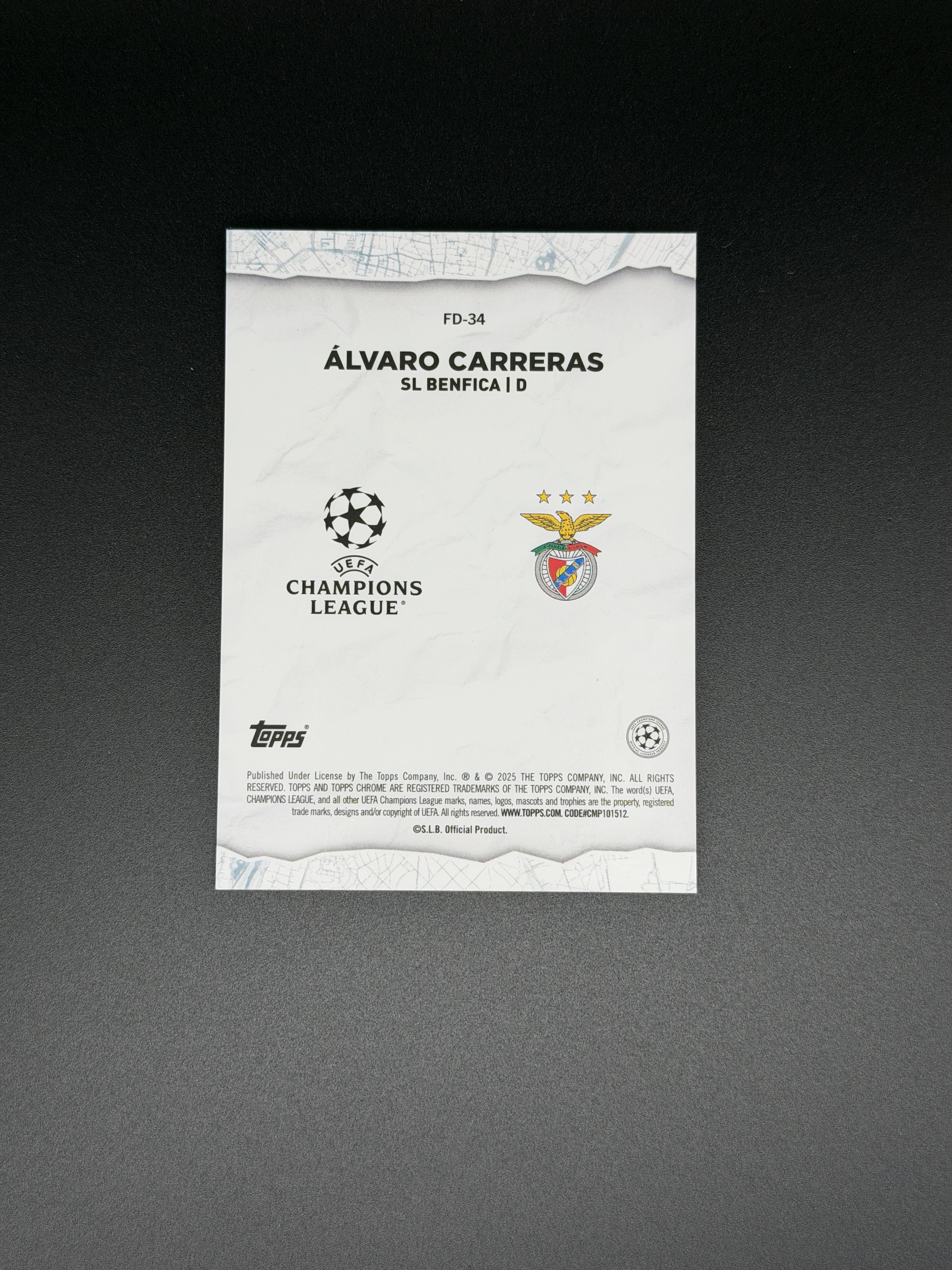 2024-25 Topps Chrome Alvaro Carreras RC 阿尔瓦罗 卡雷拉斯 A费 199编 最终目的地特卡 地标特卡 本菲卡 新秀 皇马 微瑕