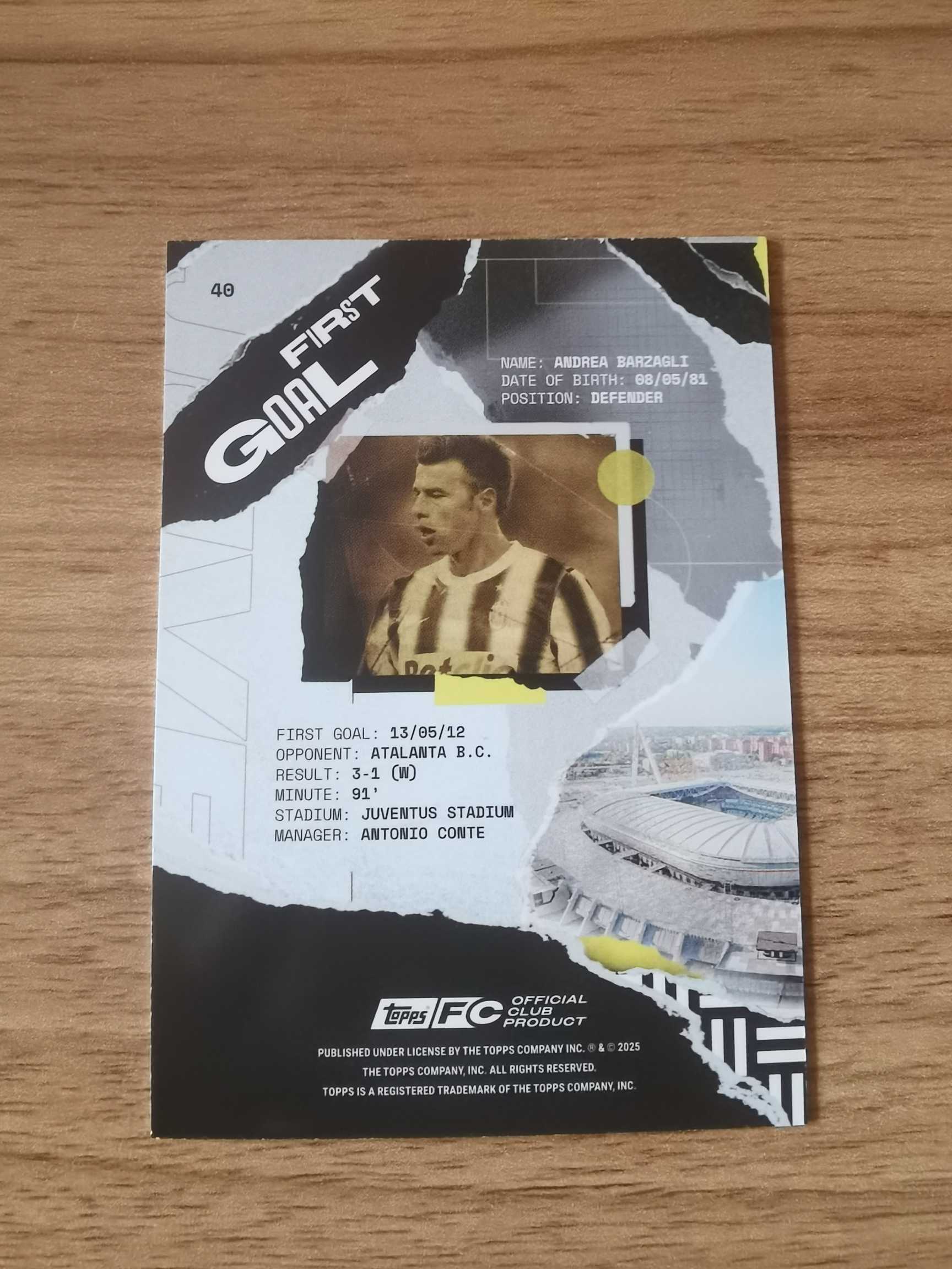 2025 Topps 尤文team队盒 Andrea Barzagli 尤文图斯 巴尔扎利 书夹特卡 碎点折 箔折 盒货 折射