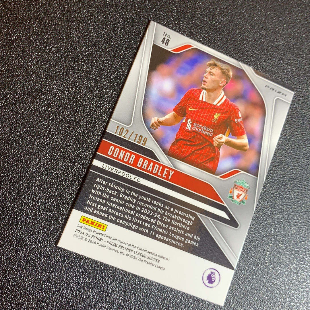 2024-25 Panini Prizm Conor Bradley 英超 prizm 利物浦 康纳 布拉德利 199编 红折射 轻印 -SY8032