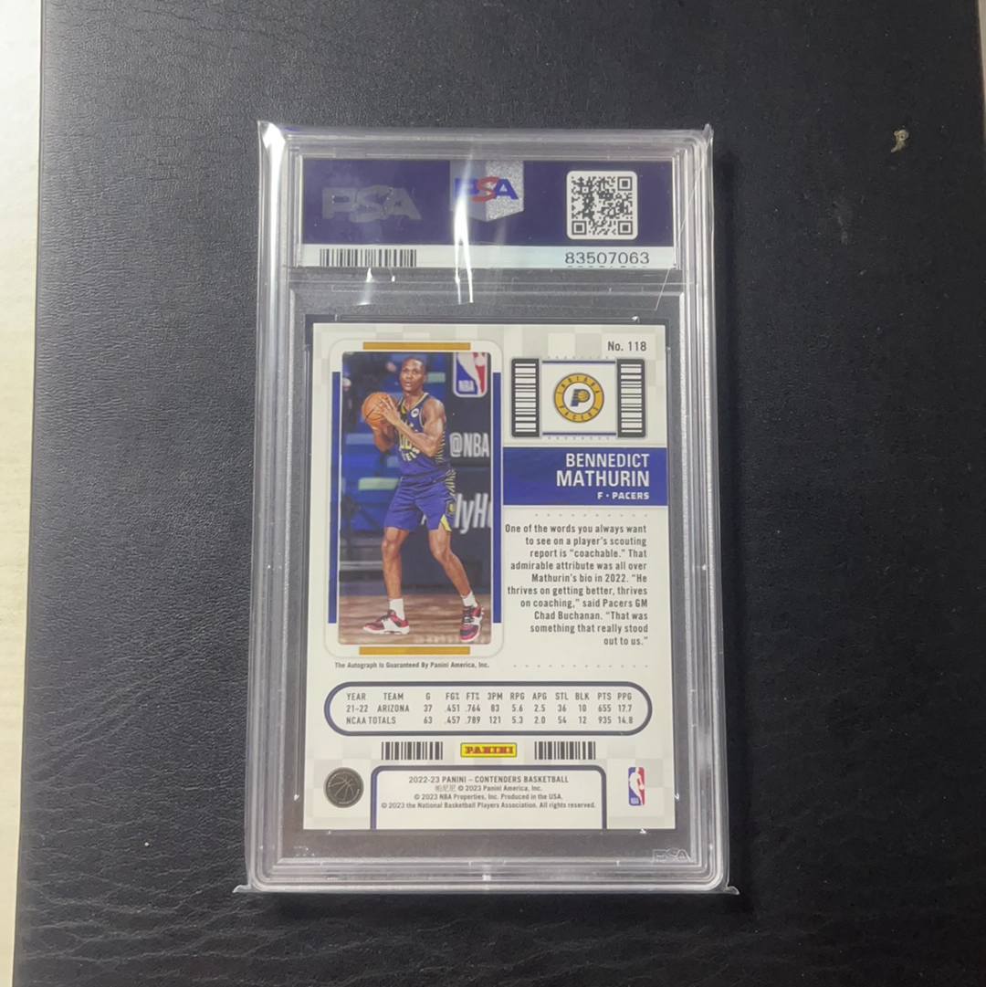 2022 Panini Contenders Bennedict Mathurin RC 步行者 马瑟琳 马图林 新秀RC 签字卡签 折射 17/49编 哈里伯顿队友 psa10
