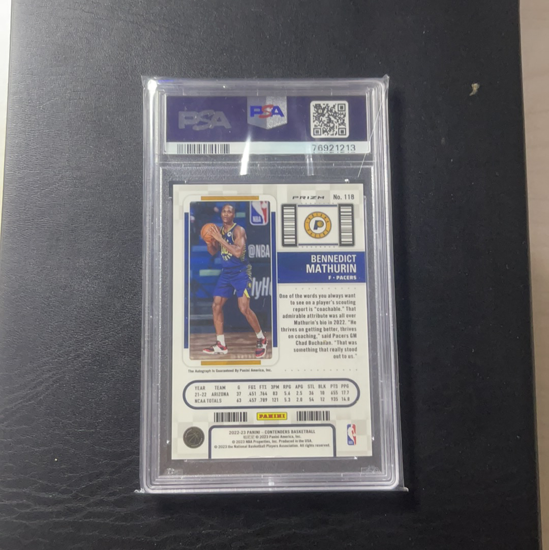 2022-23 Panini Contenders Bennedict Mathurin RC 步行者 新秀 马图林 马瑟林 签字 卡签 银折 PSA10分 球票 得分爆炸