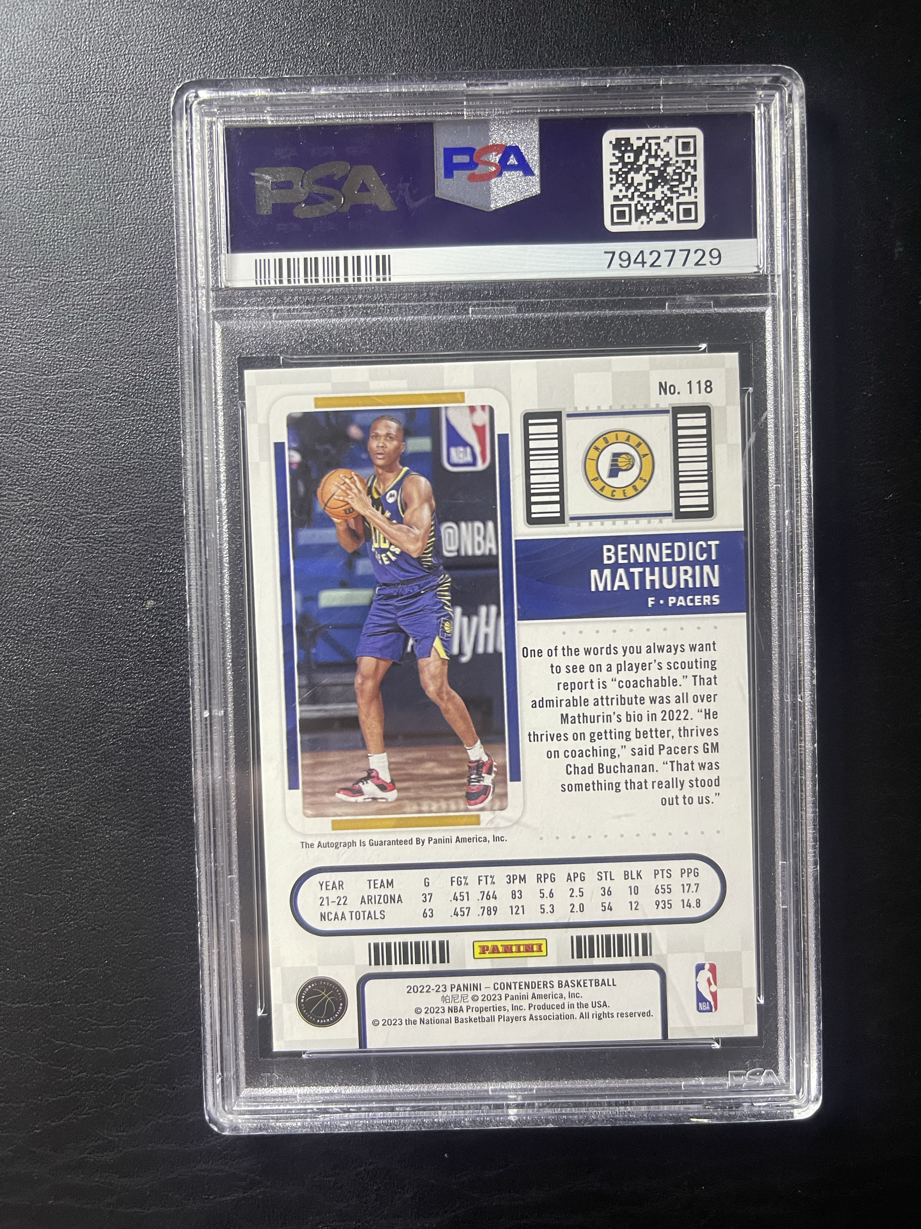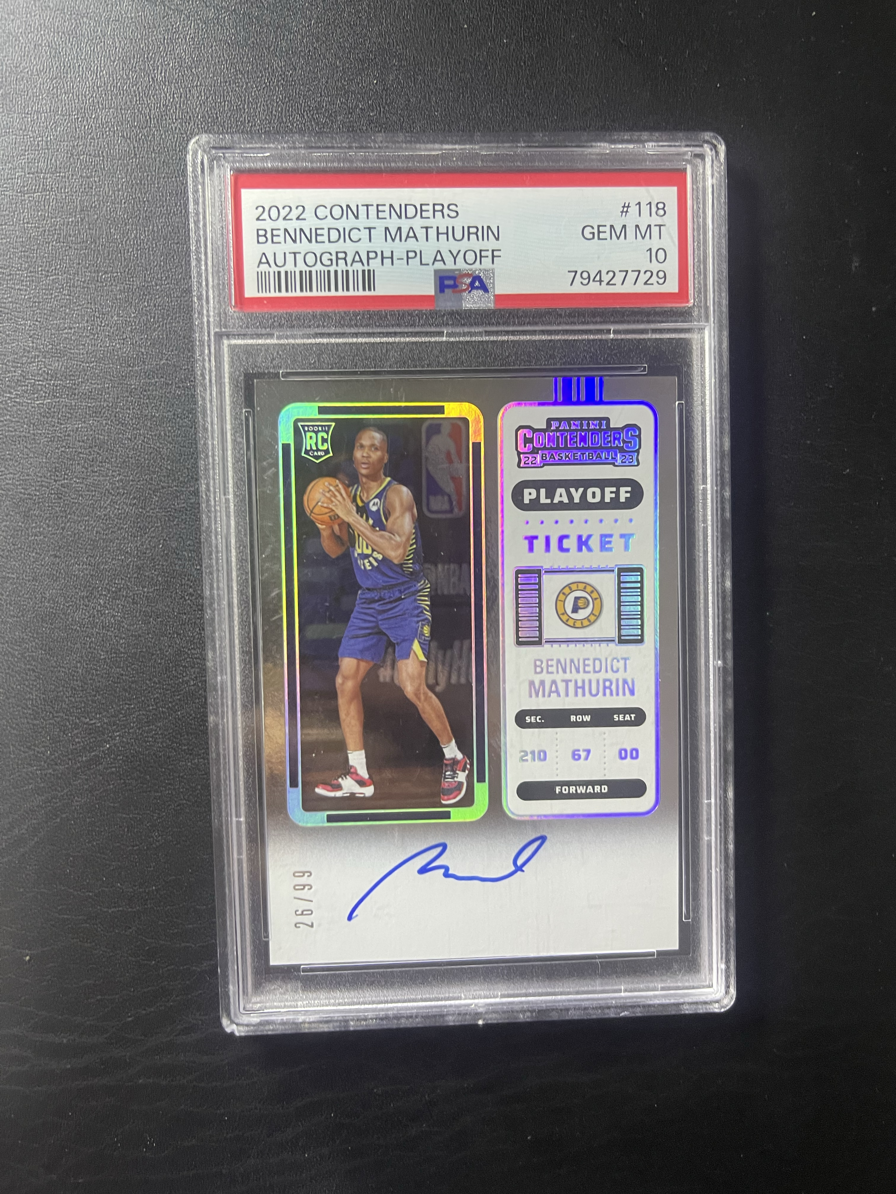 2022-23 Panini Contenders Bennedict Mathurin RC 图林 马瑟林 新秀 球票 99编 psa10 rc 哈里伯顿队友 步行者