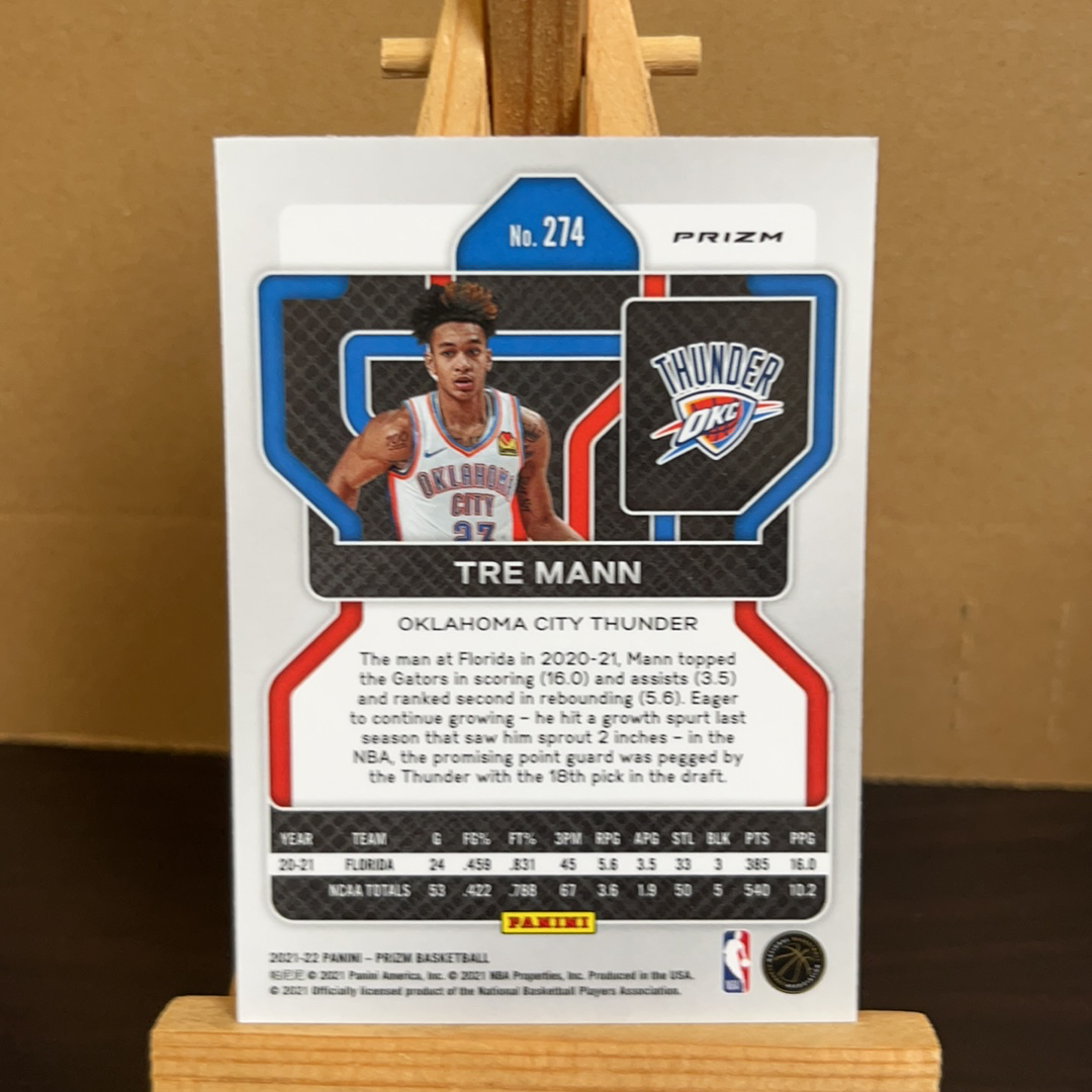 2021-22 Panini Prizm Tre Mann RC 特雷 曼恩 雷霆 新秀 红波纹 pz 折射 prizm系列 卡品如图 值得收藏 凑套必备!免费代卖!