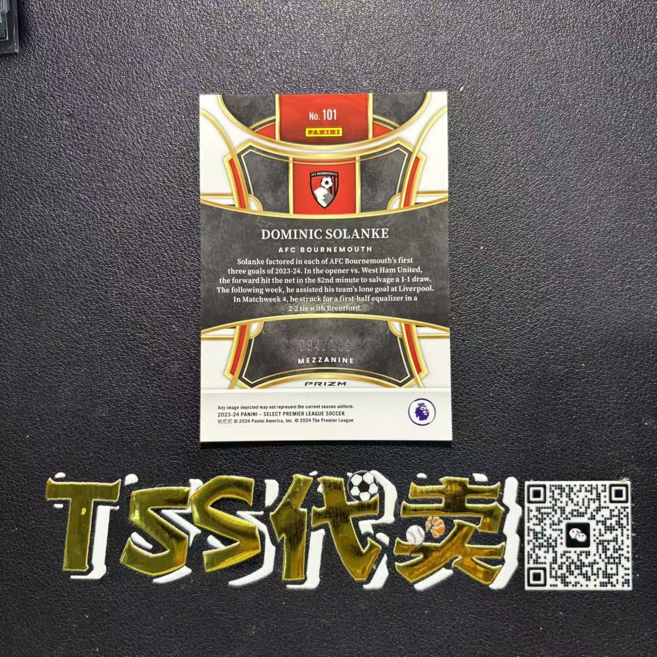 2023-24【TSS代卖-预付80%】 Panini select Dominic Solanke 英超 多米尼克 索兰克 伯恩茅斯 二级 149编 红波纹折 YN3043 ZK83-楊
