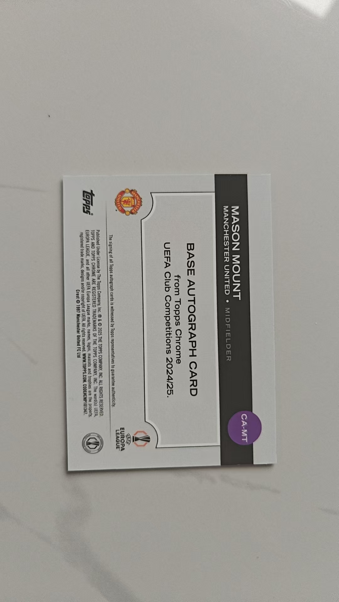 2024-25 Topps Chrome Mason Mount 梅森·芒特 曼联 英格兰 带编签字 099/199 青熔岩折 墨迹完美 欧战TC正系列