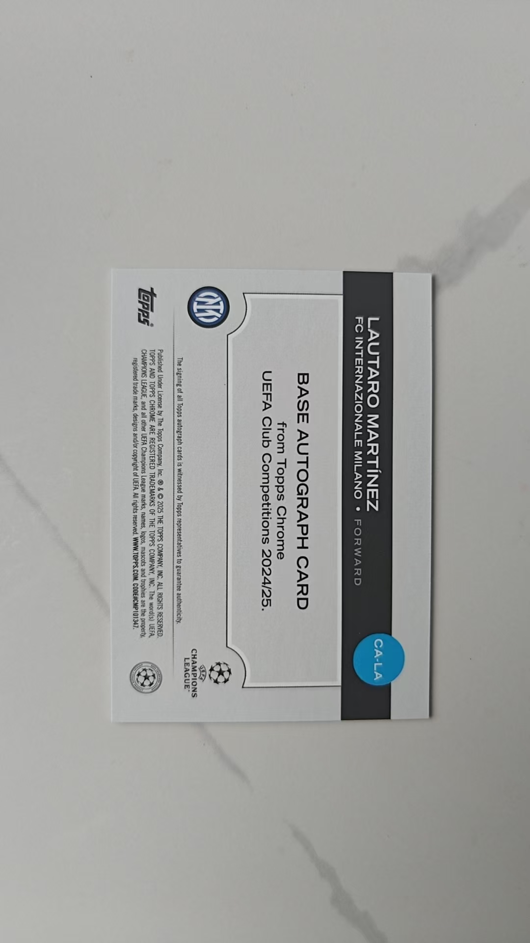 2024-25 Topps Chrome Lautaro Martinez 劳塔罗·马丁内斯 国米 阿根廷 带编签字 40/52 Topps折 墨迹完美 欧战TC正系列 大比例 返场