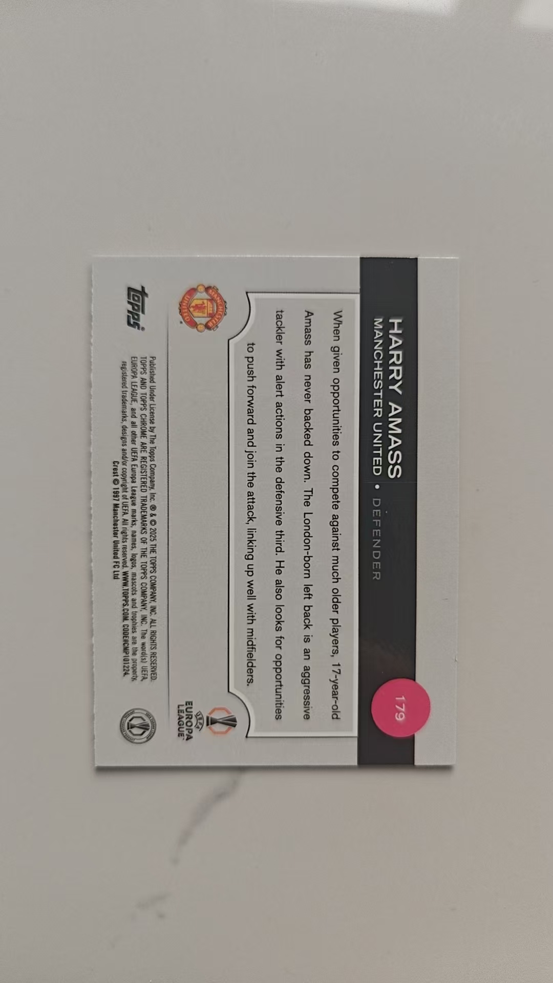2024-25 Topps Chrome Harry Amass RC 哈里·阿马斯 曼联 英格兰 新秀 尾编约等于ofo 199/199 青棱镜折 欧战TC正系列 谢周三