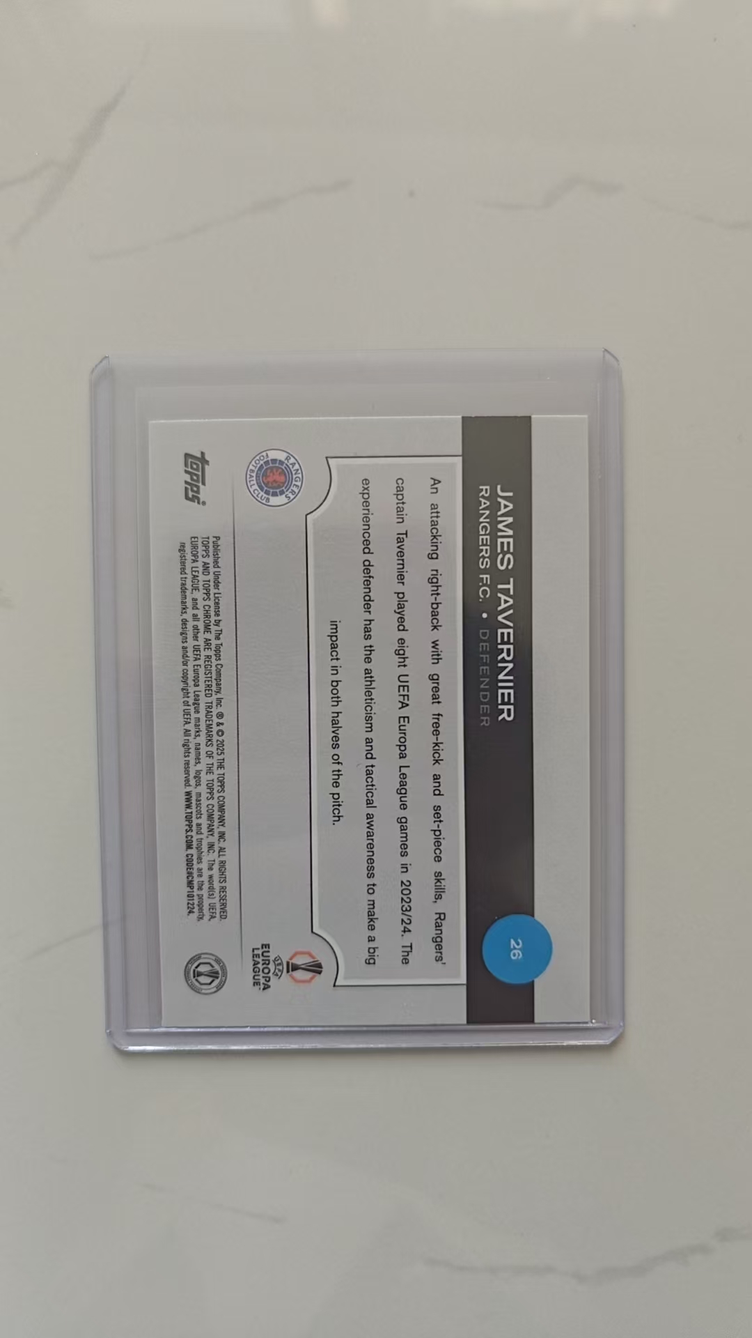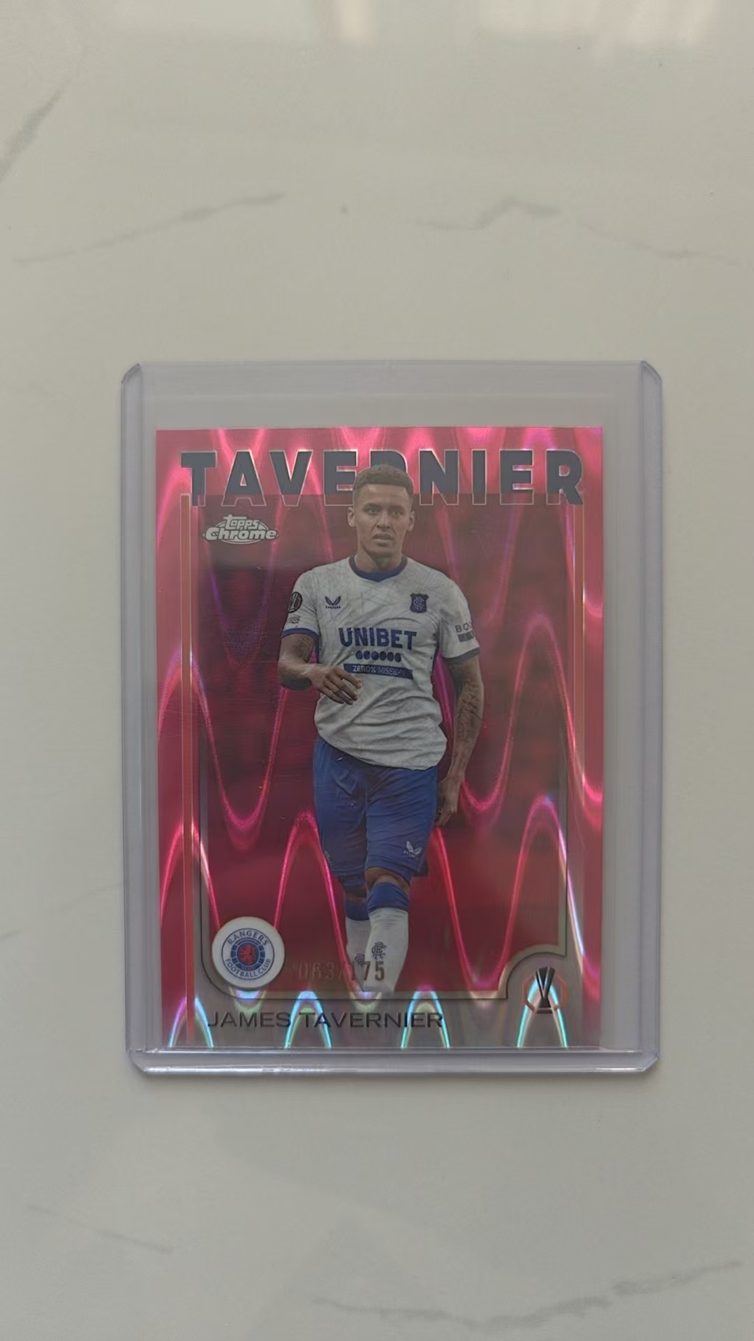 2024-25 Topps Chrome James Tavernier 詹姆斯·塔弗尼尔 格拉斯哥流浪者 英格兰 063/175 霓虹粉熔岩折 欧战TC正系列 返场