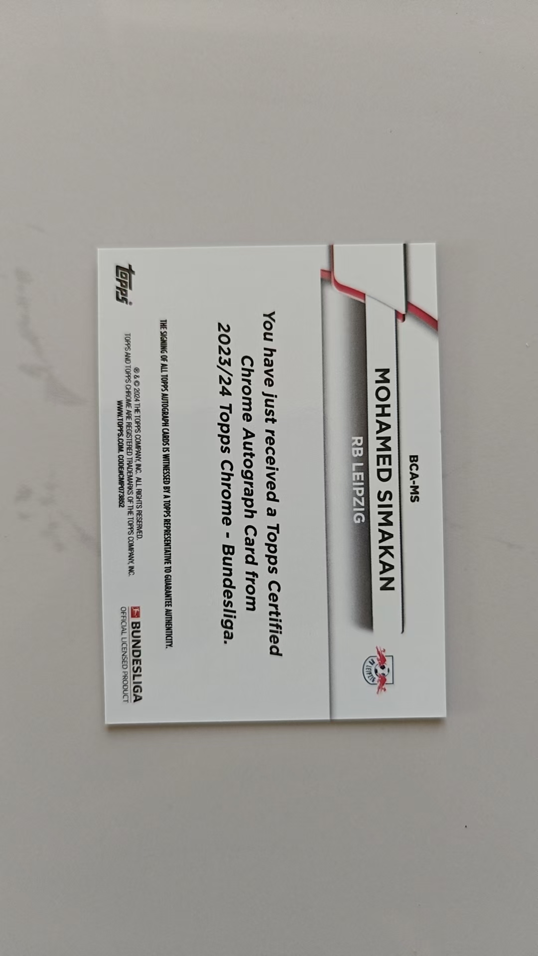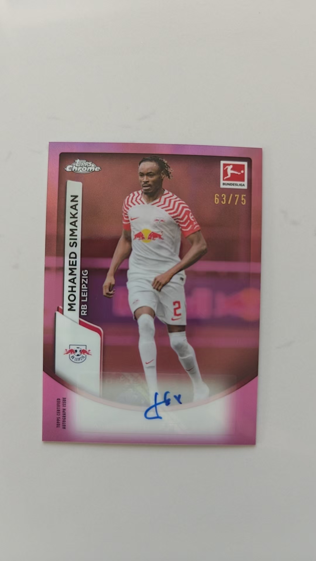 2023-24 Topps Chrome Bundesliga Mohamed Simakan 穆罕默德·西马坎 莱比锡红牛 法国 带编签字 63/75 粉折 墨迹完美 德甲TC 利亚德胜利 C罗队友