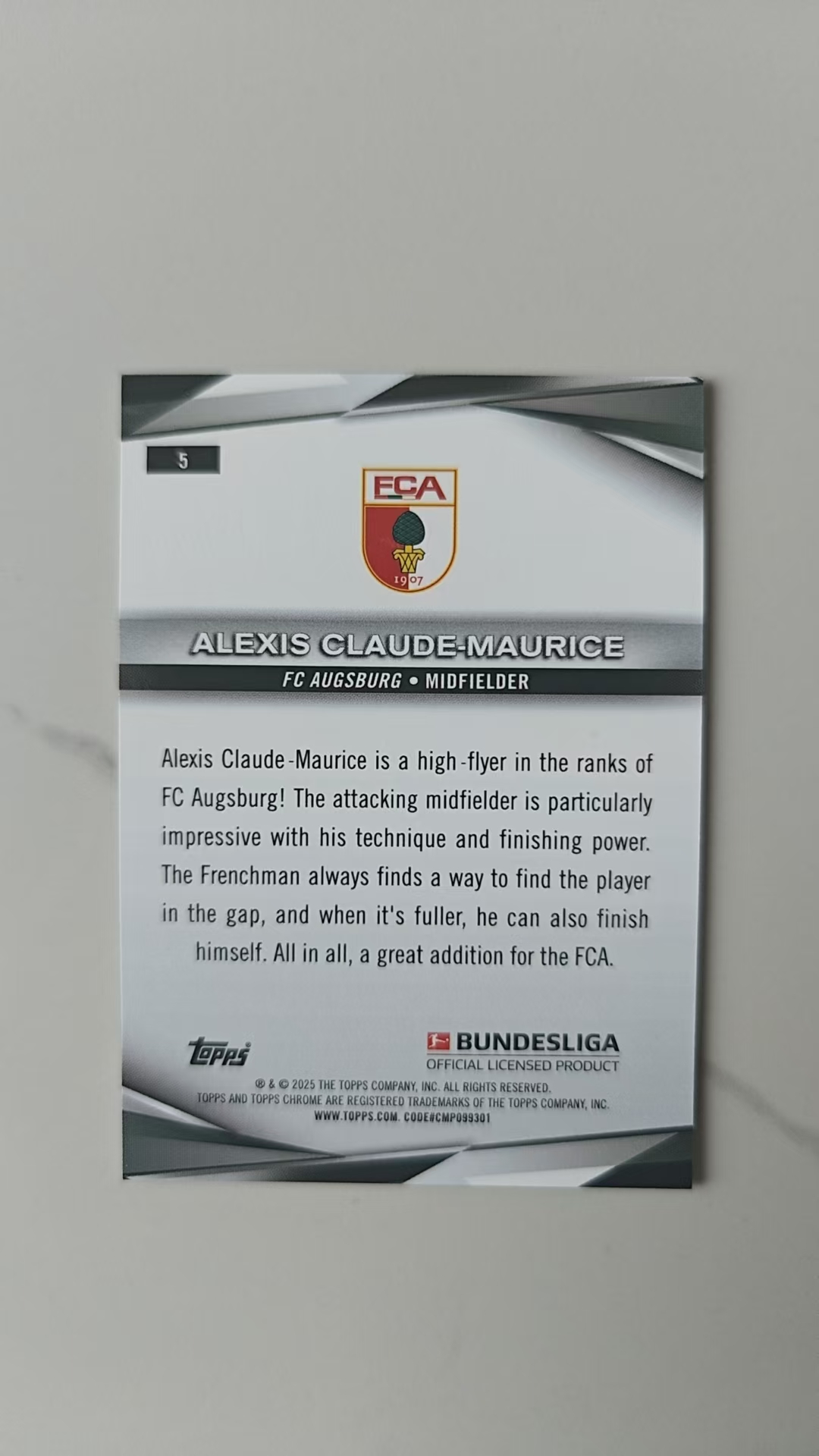 2024-25 Topps Chrome Bundesliga Alexis Claude-Maurice RC 亚历克西斯·克劳德·莫里斯 奥格斯堡 德国 新秀 071/250 绿熔岩折 德甲TC