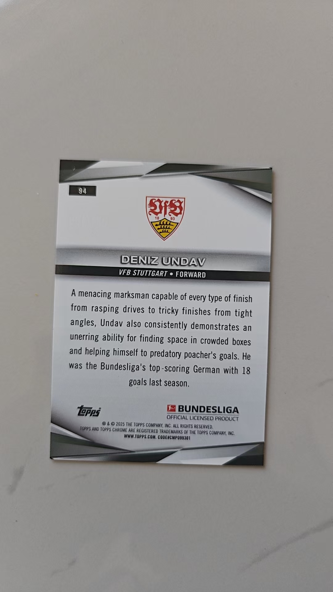 2024-25 Topps Chrome Bundesliga Deniz Undav 德尼兹·昂达夫 斯图加特 德国 151/199 紫熔岩折 紫折 德甲TC