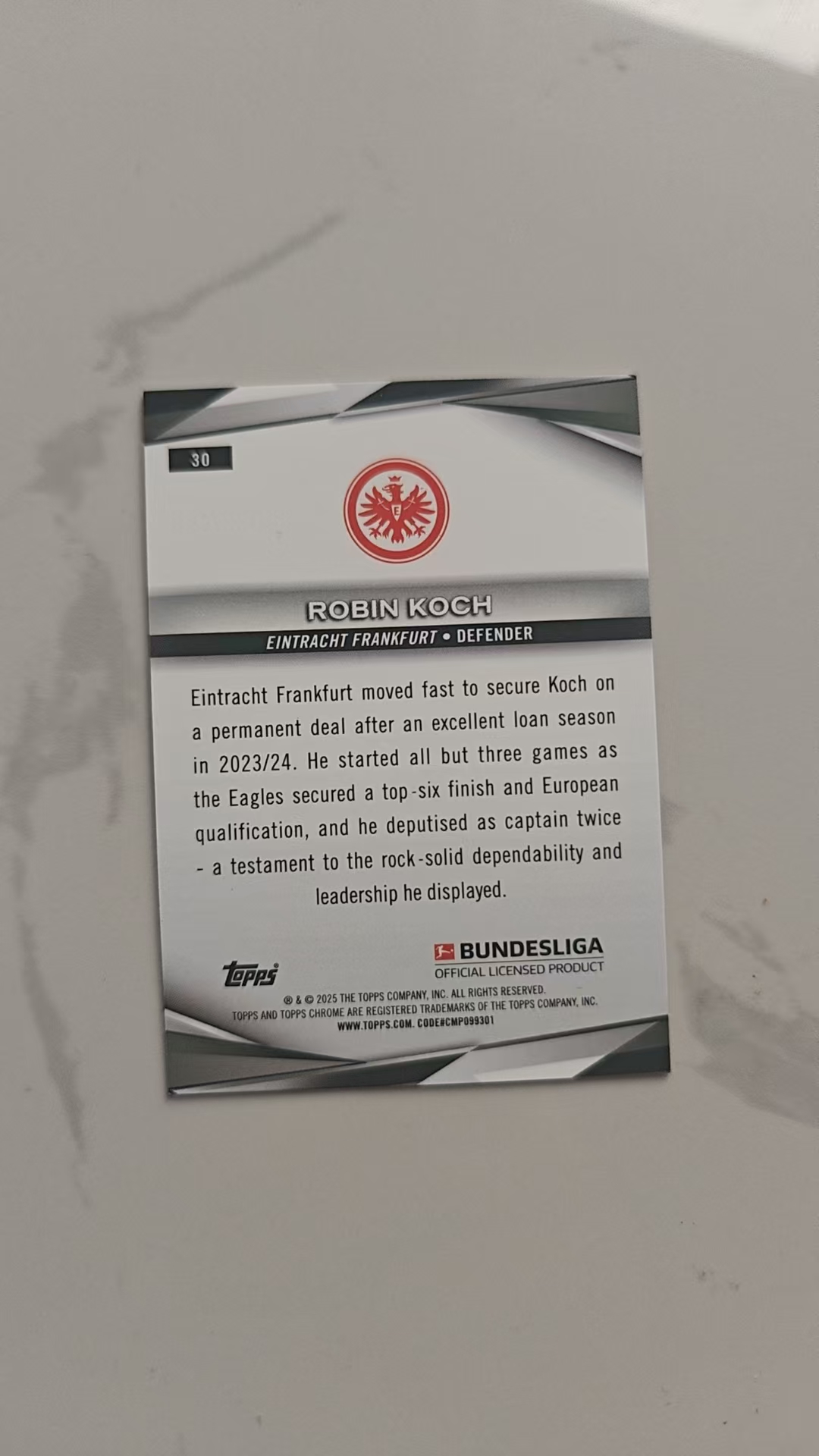 2024-25 Topps Chrome Bundesliga Robin Koch 罗宾·科赫 法兰克福 德国 082/199 紫熔岩折 紫折 德甲TC