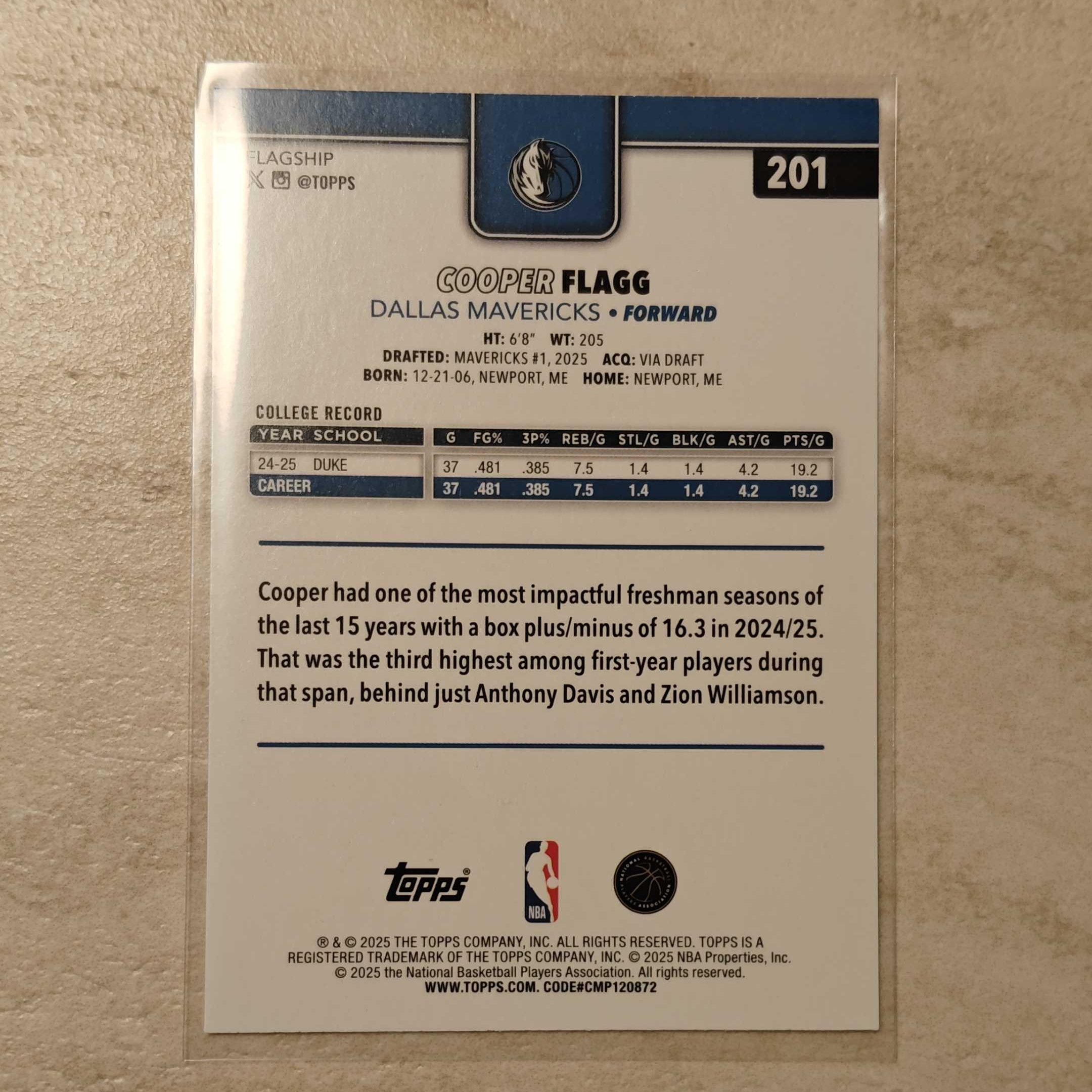 2025-26 Topps hobby cooper flagg RC 库珀 弗拉格 2025新秀状元 美国之子 美国队长 独行侠 base topps元年 收藏
