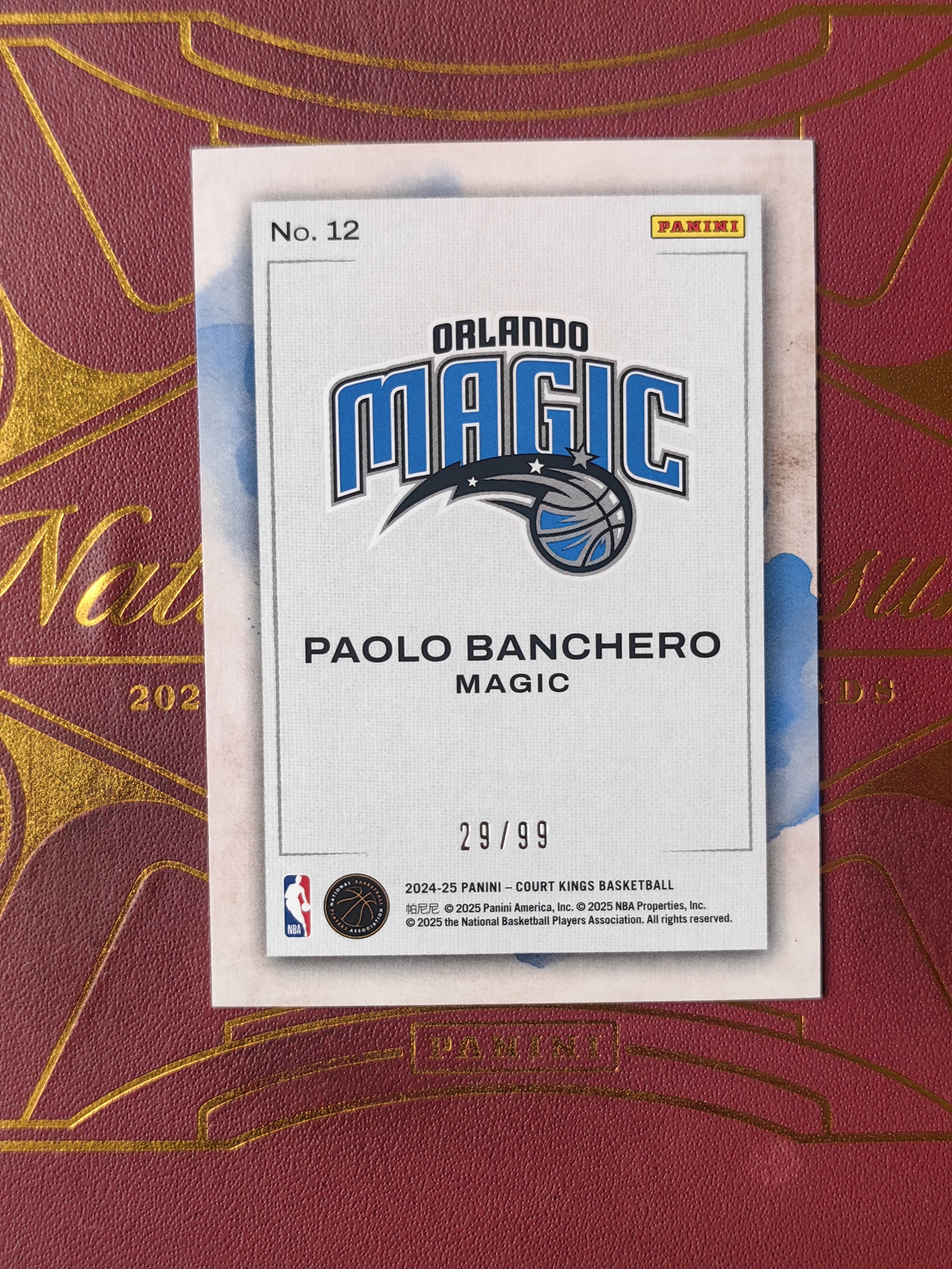 2024-25 Panini Court Kings Paolo Banchero 卡卡星球拍卖 油画 魔术 保罗 班切罗 Water Color 水彩特卡 29/99编 紫平行