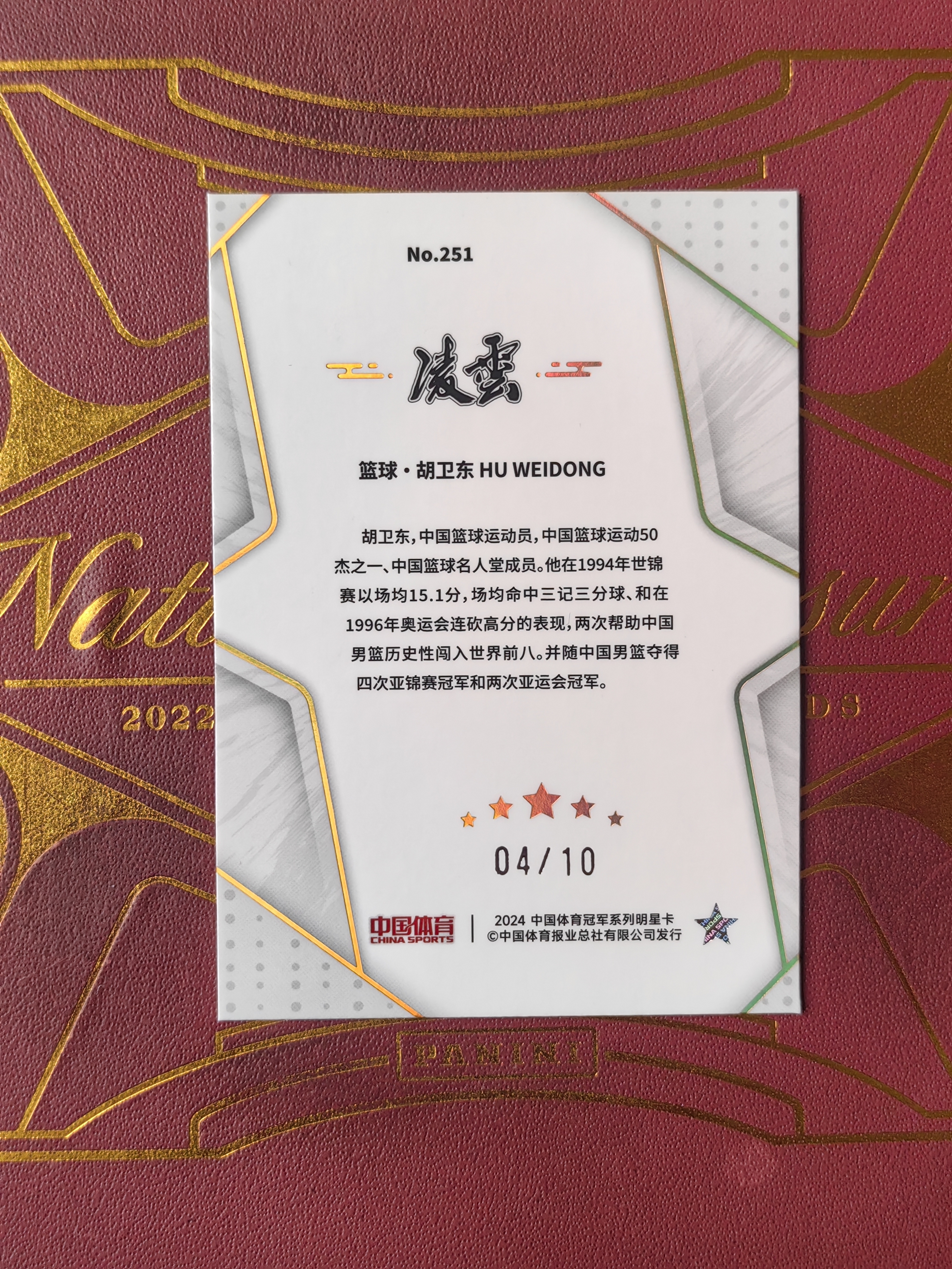 2024 奇卡 QICA 中国体育 凌云 胡卫东 卡卡星球拍卖 中国体育 凌云 中国男篮 胡卫东 4/10编 超低编 金折 中国篮球名人堂成员