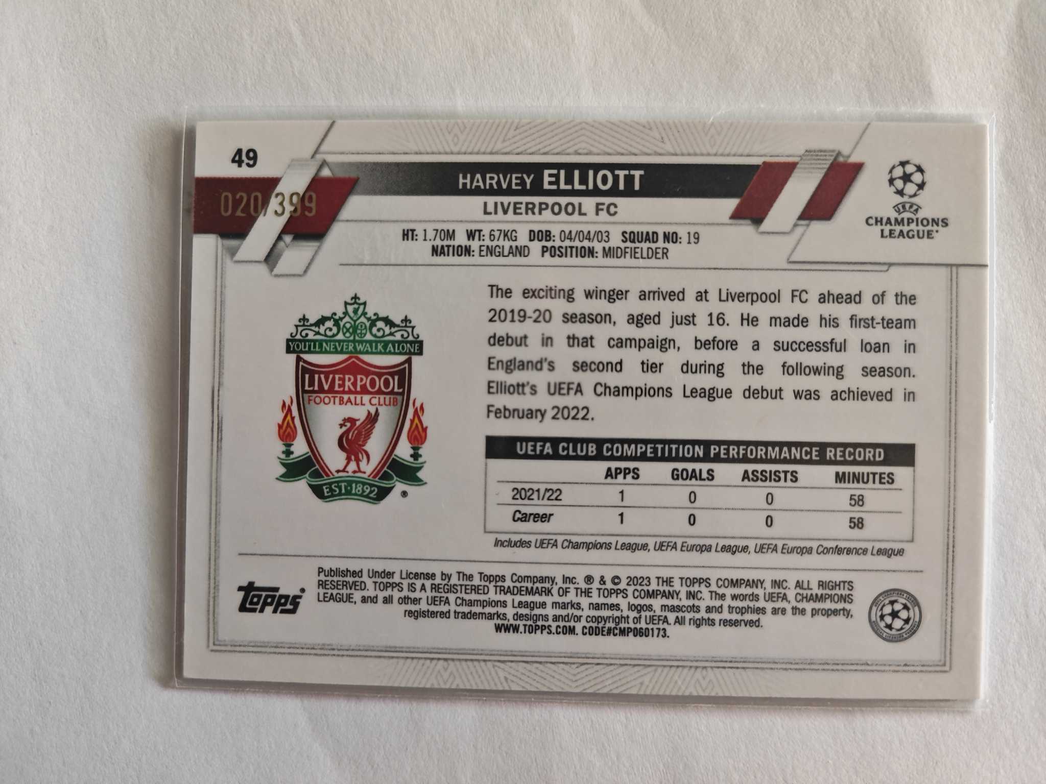 2022/2023 赛季 欧冠 topps chrome 红军 利物浦 中场 埃利奥特 20/399编 绿折 卡品不保如图