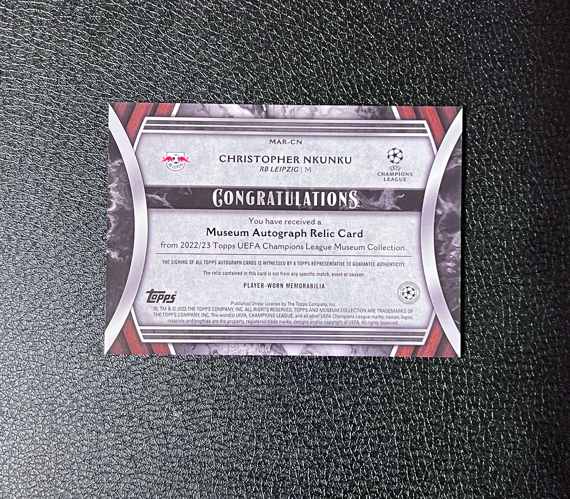 2022-23 Topps UEFA Champions League Christopher Nkunku 欧冠博物馆Museum 莱比锡 恩昆库 11/25编 红折 亲穿球衣完美签字法国 ac米兰