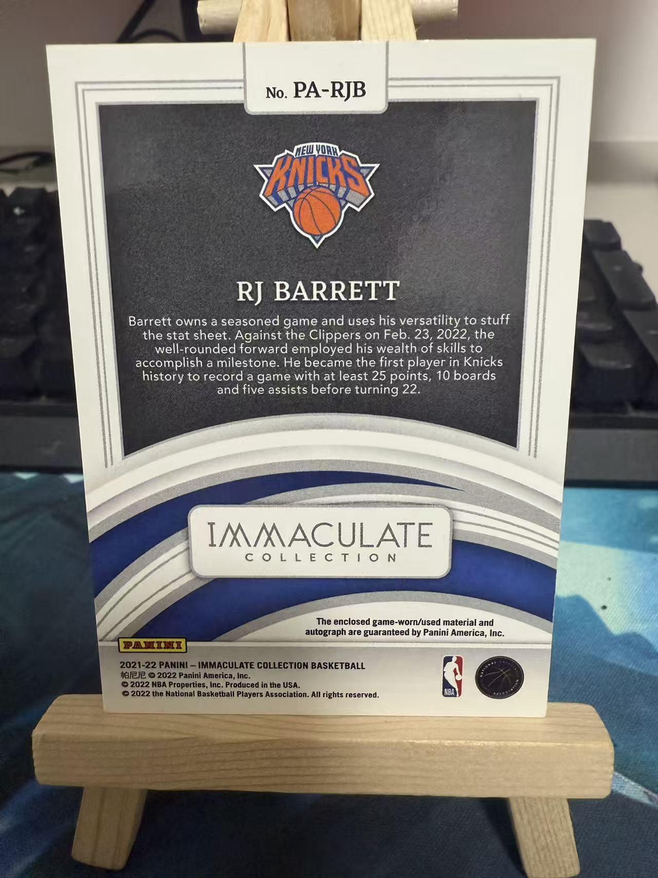 2021-22 Panini Immaculate R.J. Barrett RJ 巴雷特 RJB 尼克斯 猛龙 金闪版 四色Patch 镜面 卡签签字 2/10编 低编 暴力切割 瑕疵如图