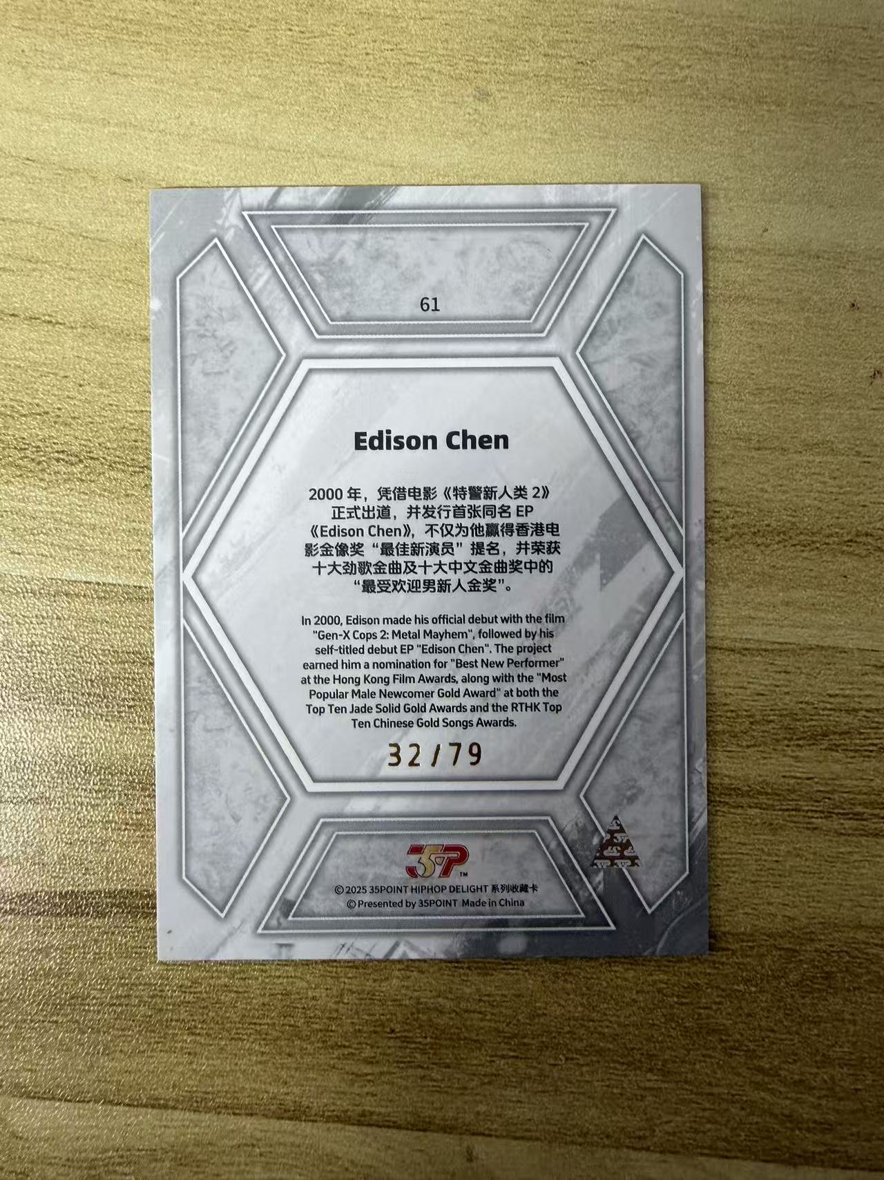 2025 35POINT HIPHOP DELIGHT 陈冠希 HIPHOP DELIGHT Rapper 嘻哈 说唱歌手 唱片 特卡 异形切割 折射 瑕疵如图 陈冠希 79编
