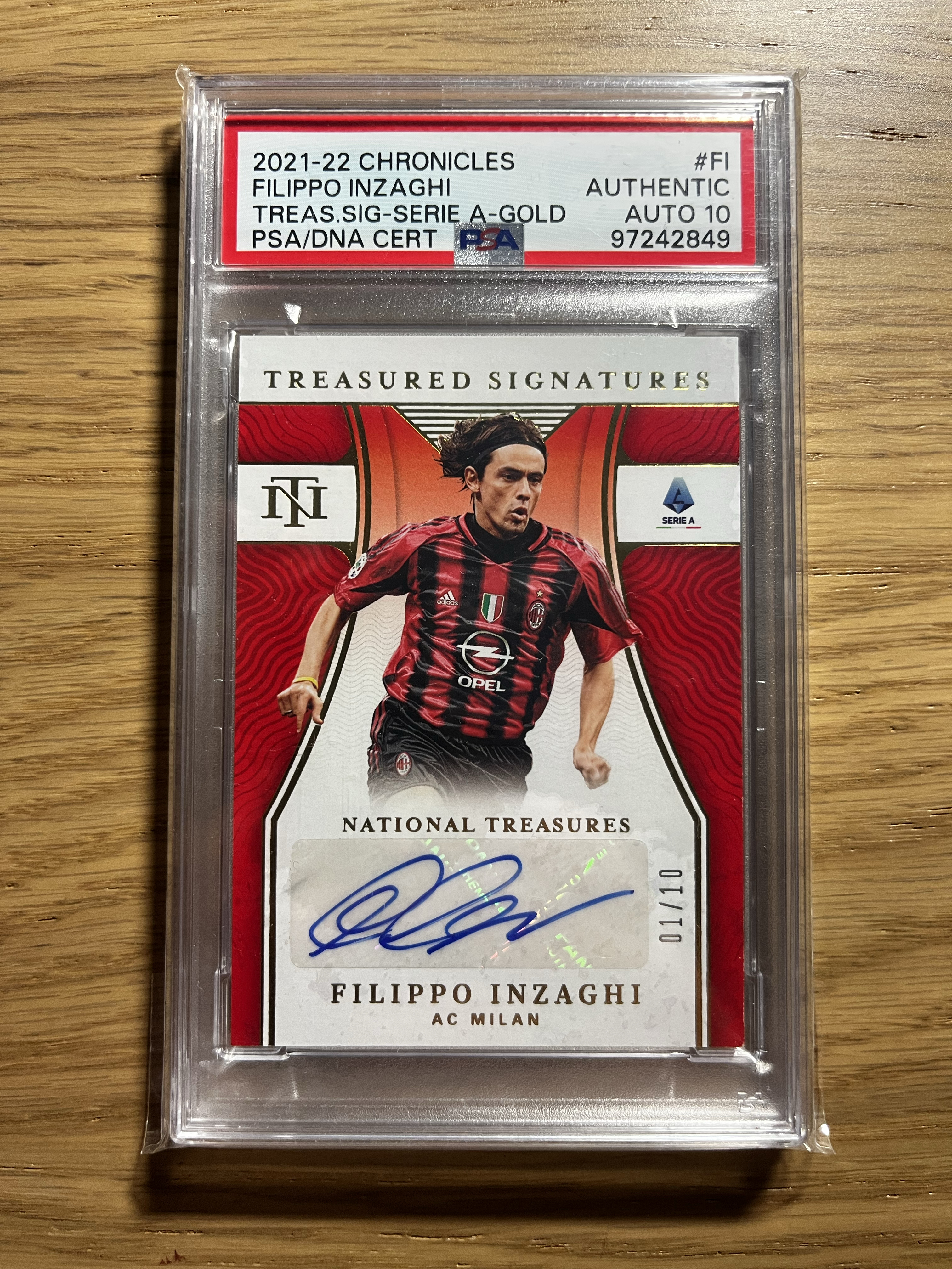 2021-22 Panini National Treasures Filippo Inzaghi 帕尼尼编年史国宝系列 AC米兰 因扎吉 10编金平行完美签字 九爷 意大利球星评级 【剑客拍卖】