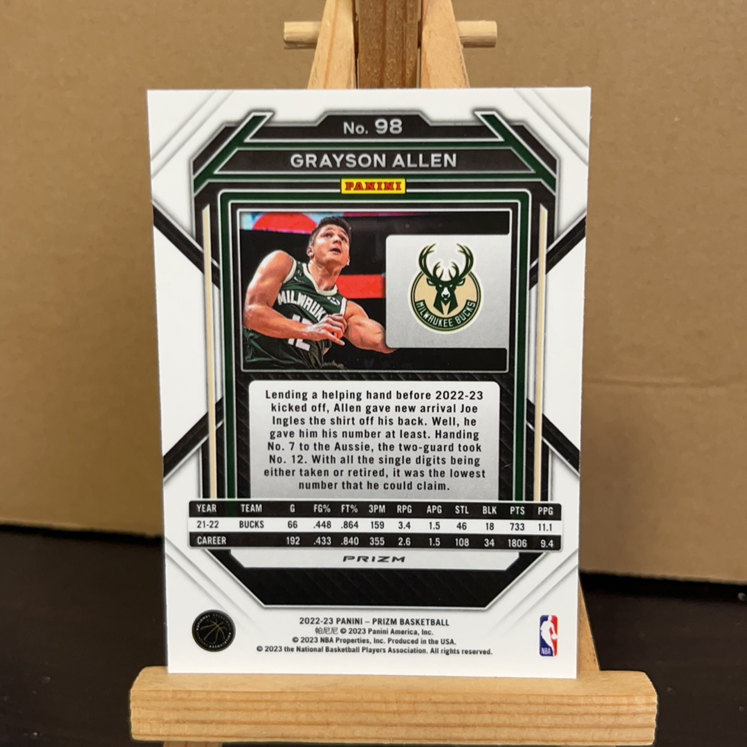2022-23 Panini Prizm Grayson Allen 艾伦 雄鹿 银折 pz 折射 prizm系列 卡品如图 值得收藏 凑套必备!免费代卖!