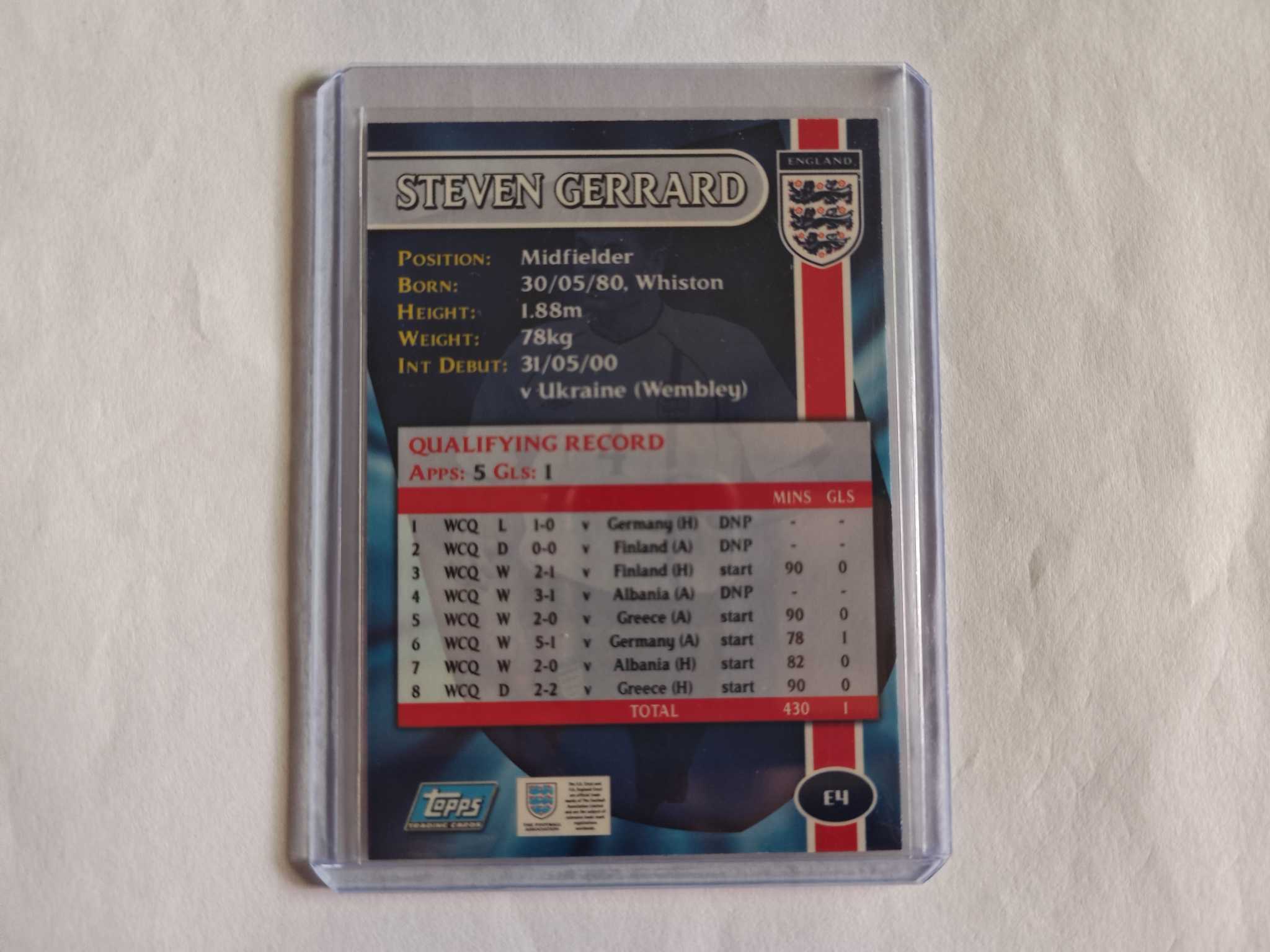 2002 Topps England 韩日世界杯 英格兰队盒 STEVEN GERRARD 杰拉德 利物浦 英格兰背景选图 超美蓝色反光折射闪卡 三狮军团队徽背景 卡品不保如图