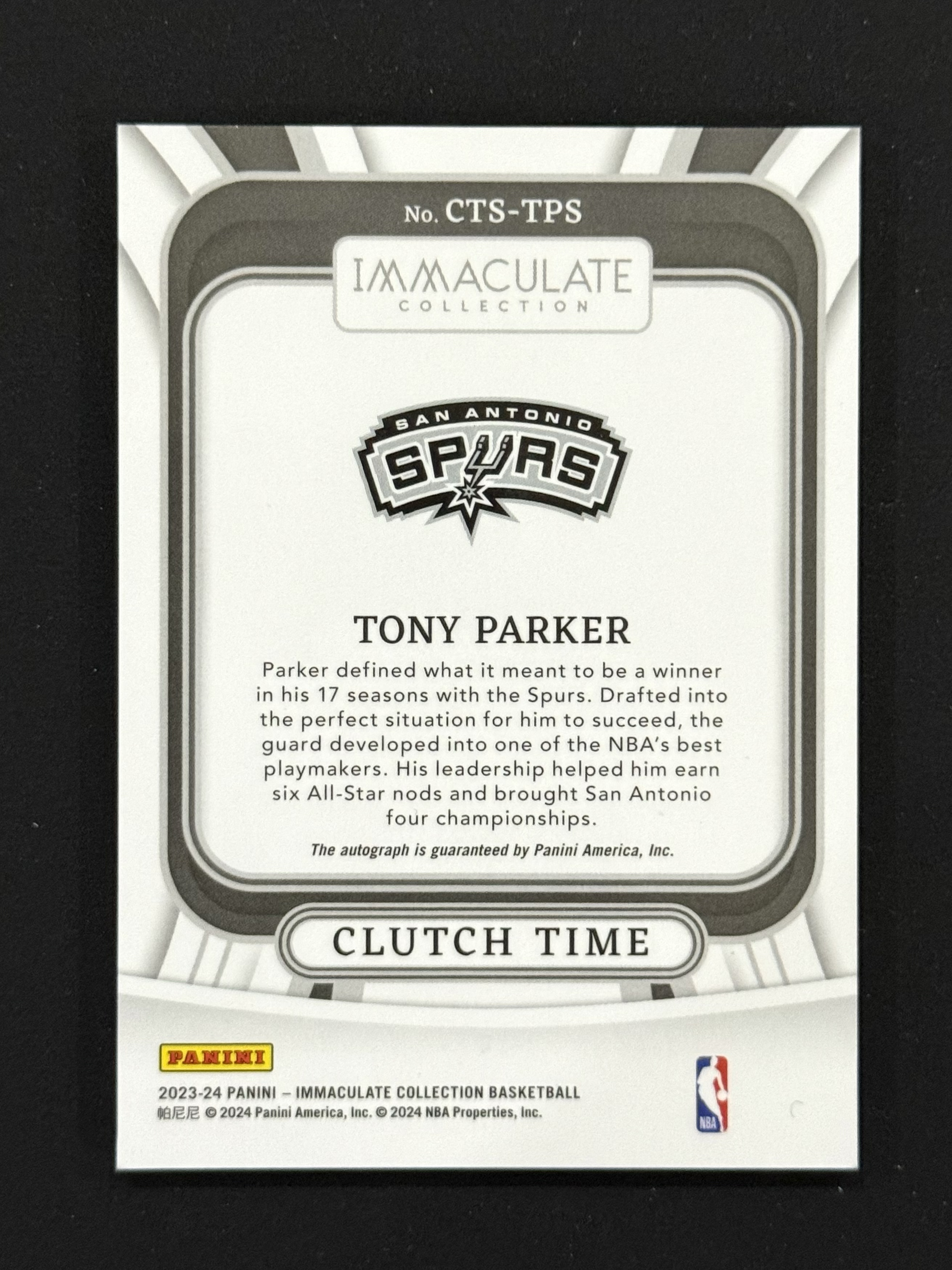 2023-24 Panini Immaculate Tony Parker 爱咪咪 马刺 托尼 帕克 法国跑车 签字 卡签 Clutch Time 99编 专收必备 收藏必备