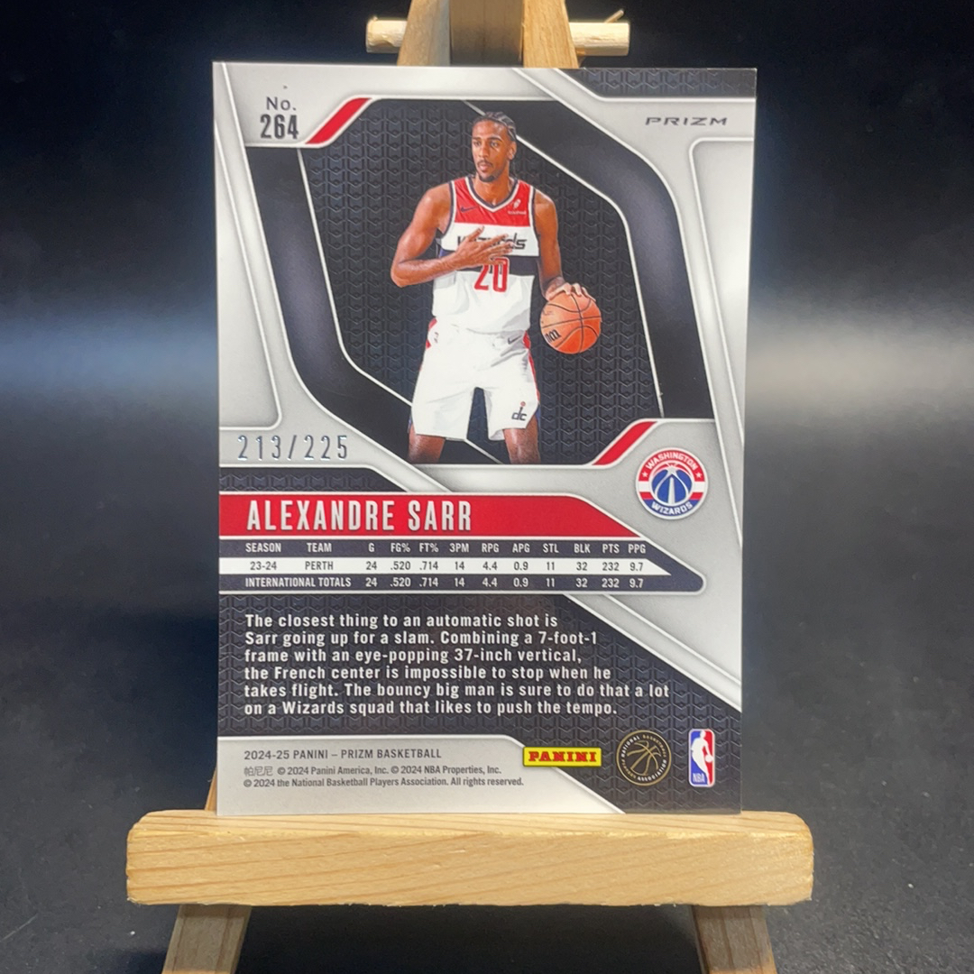 2024-25 Panini Prizm Alex Sarr RC Prizm 亚历克斯 萨尔 RC 新秀 青碎冰折 225编 奇才 奇才好秀 微瑕如图 聪哥
