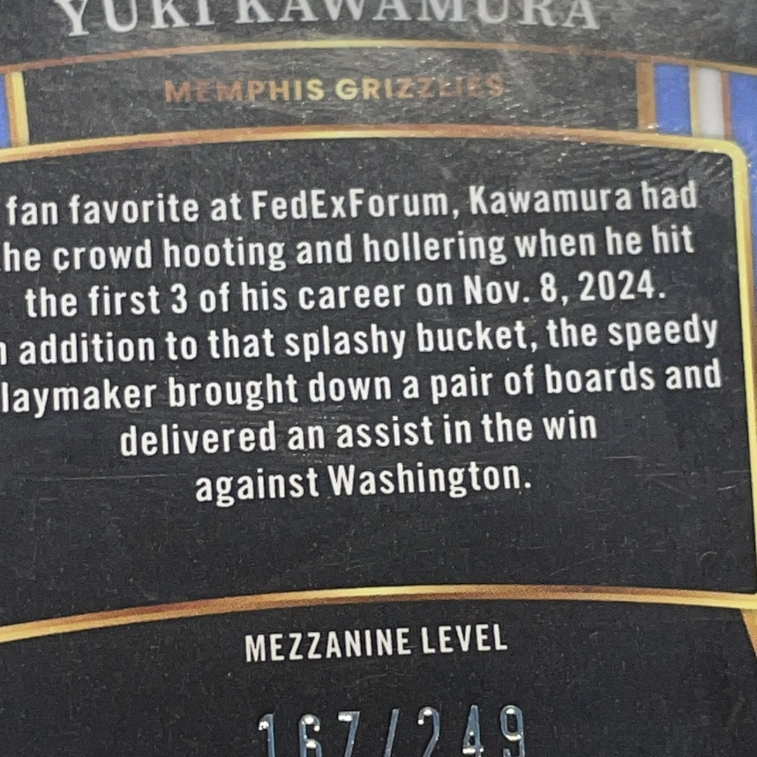 2024-25 Panini Select Yuki Kawamura RC RC新秀 灰熊 河村勇辉 163/249编 紫瀑布折 折射  微瑕如图 聪哥