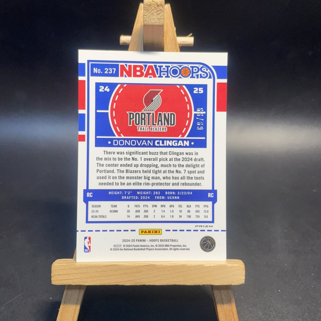 2024-25 Panini NBA Hoops Donovan Clingan RC 多诺万 克林根 99编 红折 开拓者 如图 杨瀚森队友 微瑕如图 聪哥
