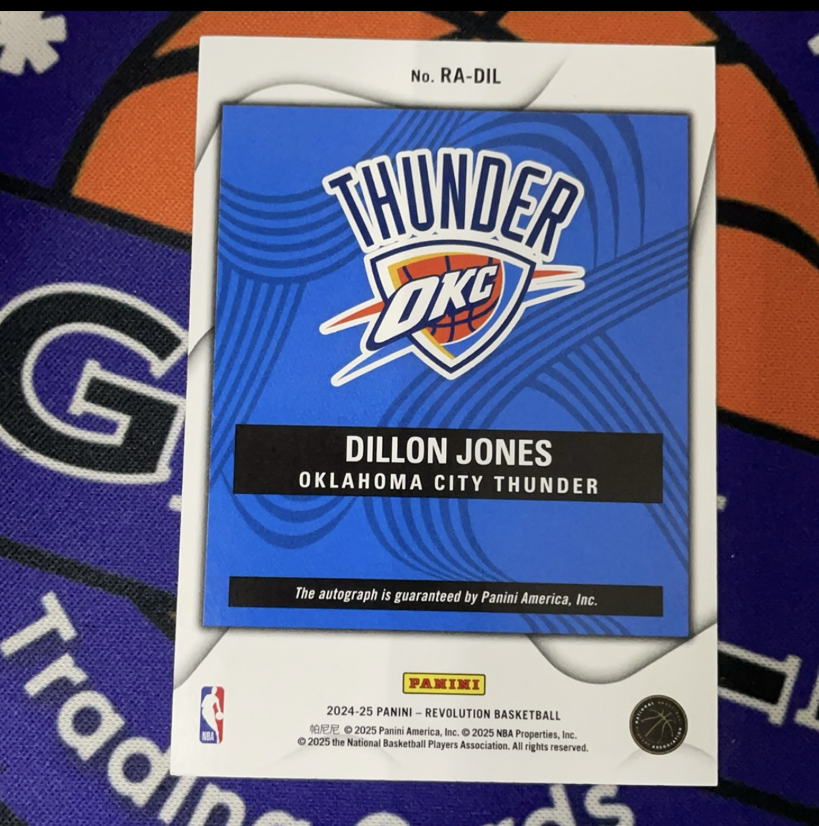 2024-25 Panini Revolution Dillon Jones RC 【ggball代拍】狄龙 琼斯 革命 新秀 签字 雷霆 常规赛发挥出色 亚历山大sga队友