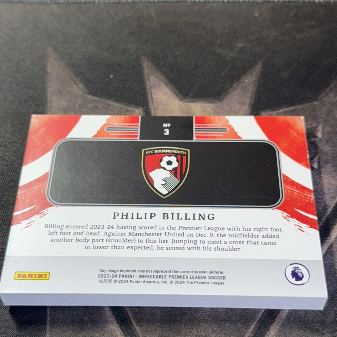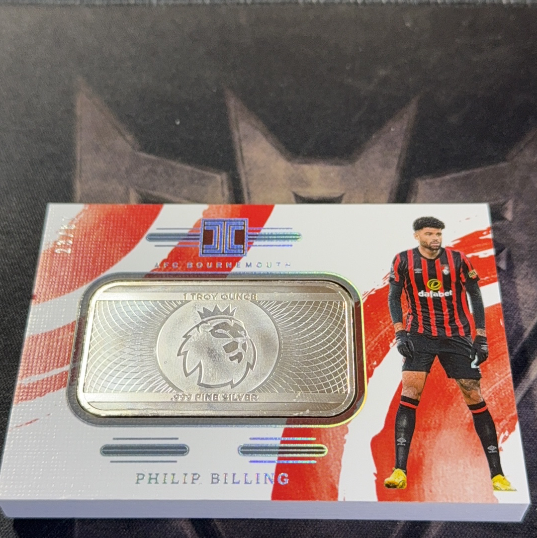 2023-24 Panini Impeccable Philip Billing 英超 小真金 伯恩茅斯 菲利普 比林 丹麦 物料实物 英超Logo 一盎司银块 闪版 37编 大比例 实卡精美