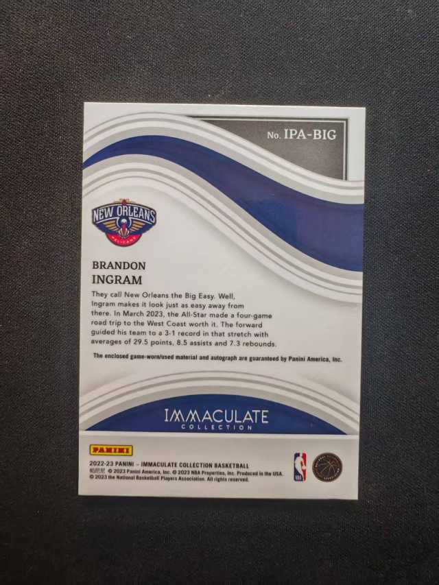 2022-23 Panini Immaculate Brandon Ingram 布兰登 英格拉姆 鹈鹕 IMM 49编 金版 小窗Patch 签字 卡签