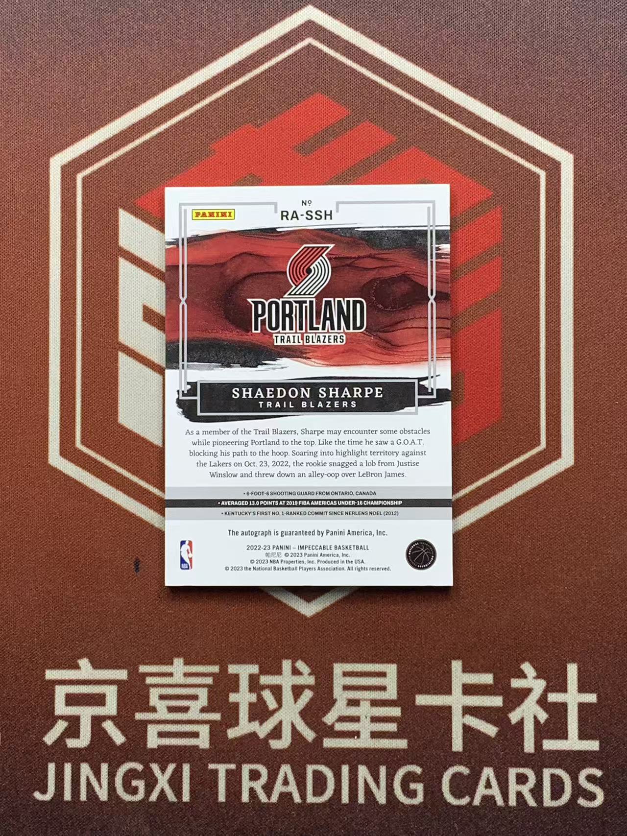 2022-23 Panini Impeccable Shaedon Sharpe RC 【京喜代拍-大帝门徒】小真金系列 谢登 夏普 开拓者 新秀签字 卡签 99编 杨瀚森队友 瑕疵如图 介意勿拍