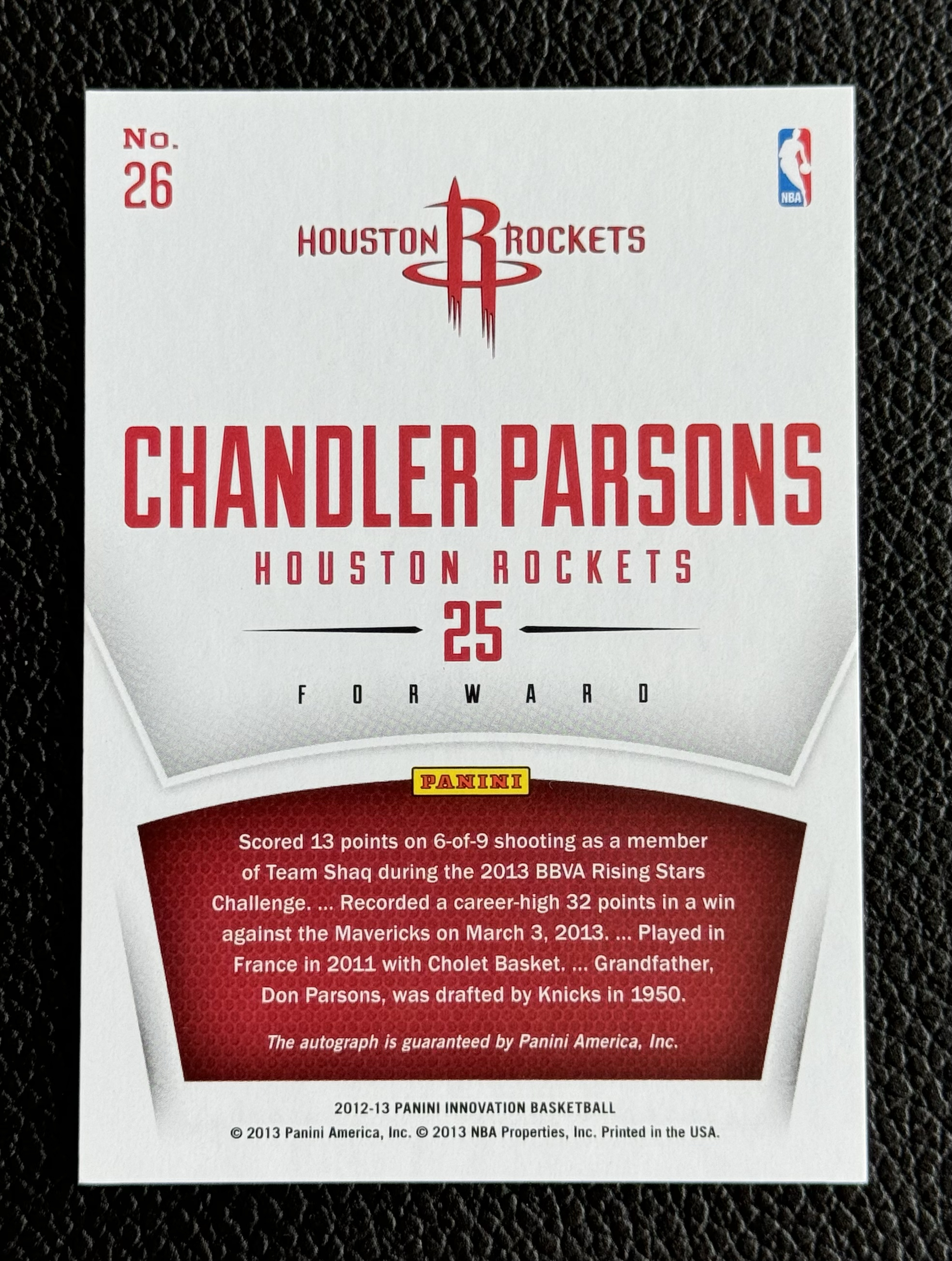 2012-13 Panini Innovation Chandler Parsons RC 【九九代拍】火箭 钱德勒 帕森斯 新秀 RC innovation 签字 黑板签 银笔签 折射 瑕疵如图 谢