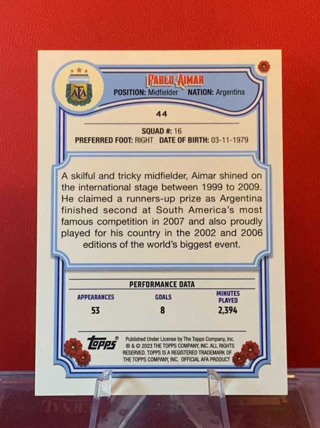 (老末代拍)E20 2023 Topps Fileteado菲勒特 阿根廷 队盒 艾马尔 卡品如图 本菲卡 瓦伦西亚 河床 Pablo Aimar  顺丰寄付 免费代拍