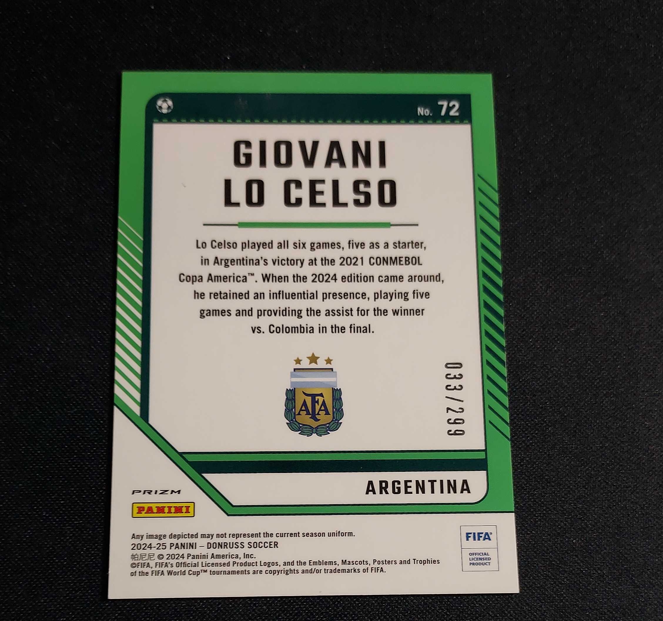 2024-25 Panini Donruss Optic Giovani Lo Celso 洛塞尔索 阿根廷 33/299编 红折 折射 卡品如图 专收 收藏必备