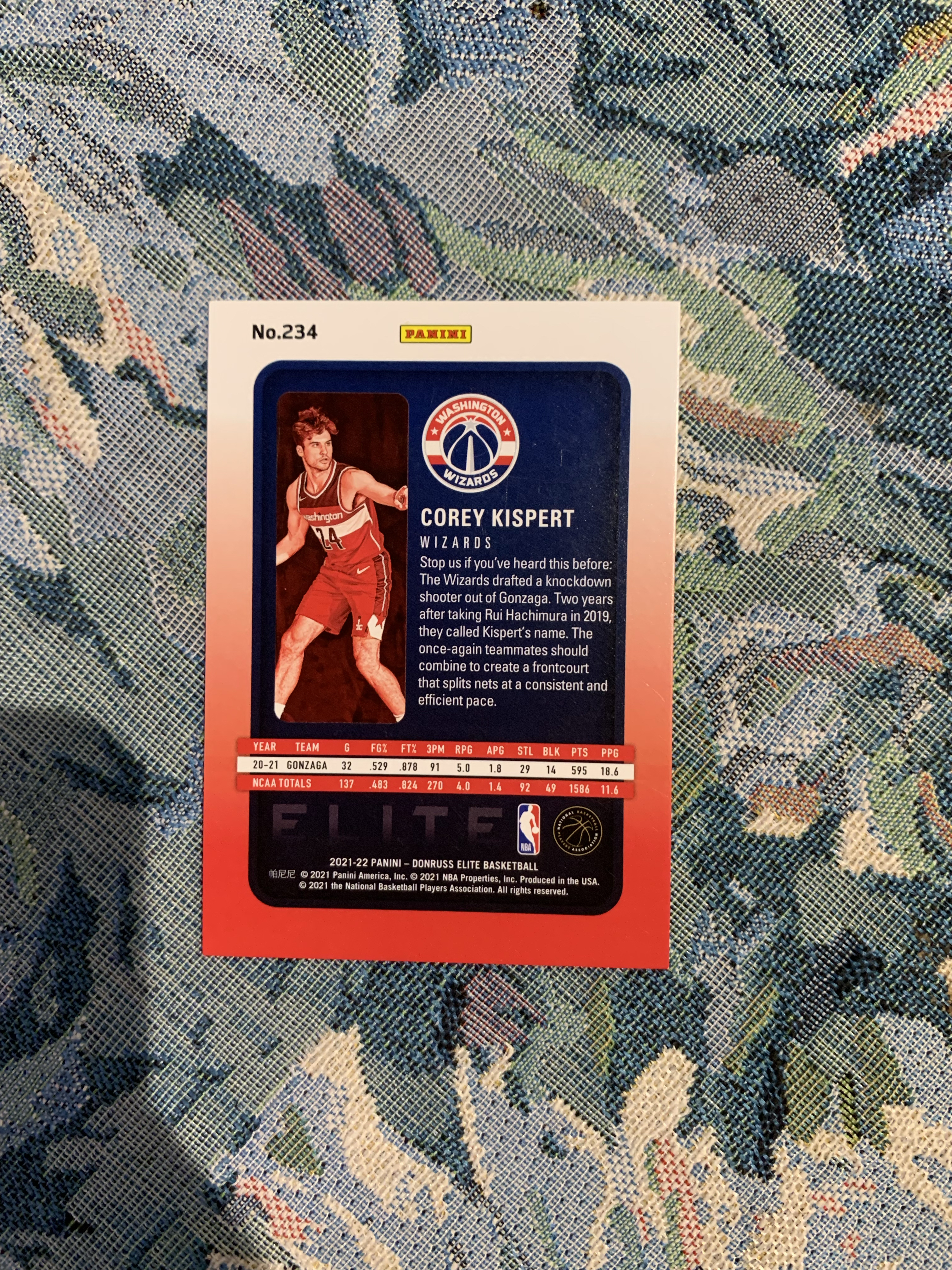 2021-22 Elite Corey Kispert RC 基斯珀特 奇才 精英 新秀 957/999编 折射 Base 少见 专收必备 rc hour