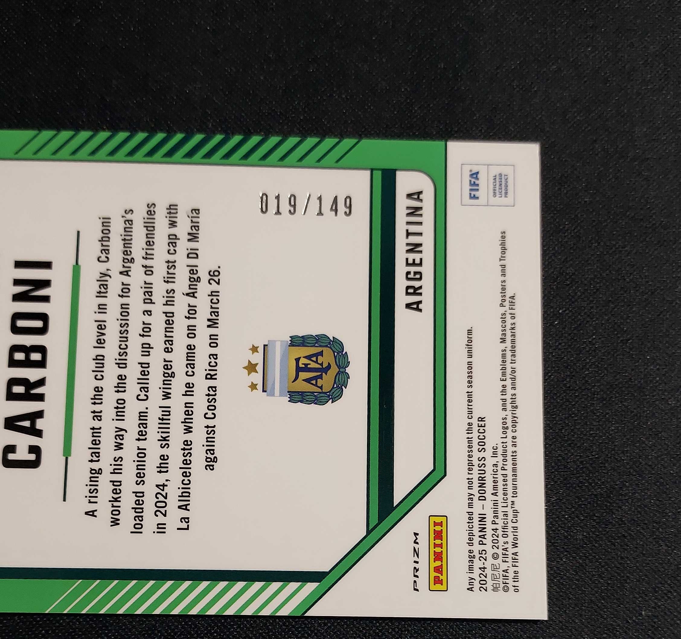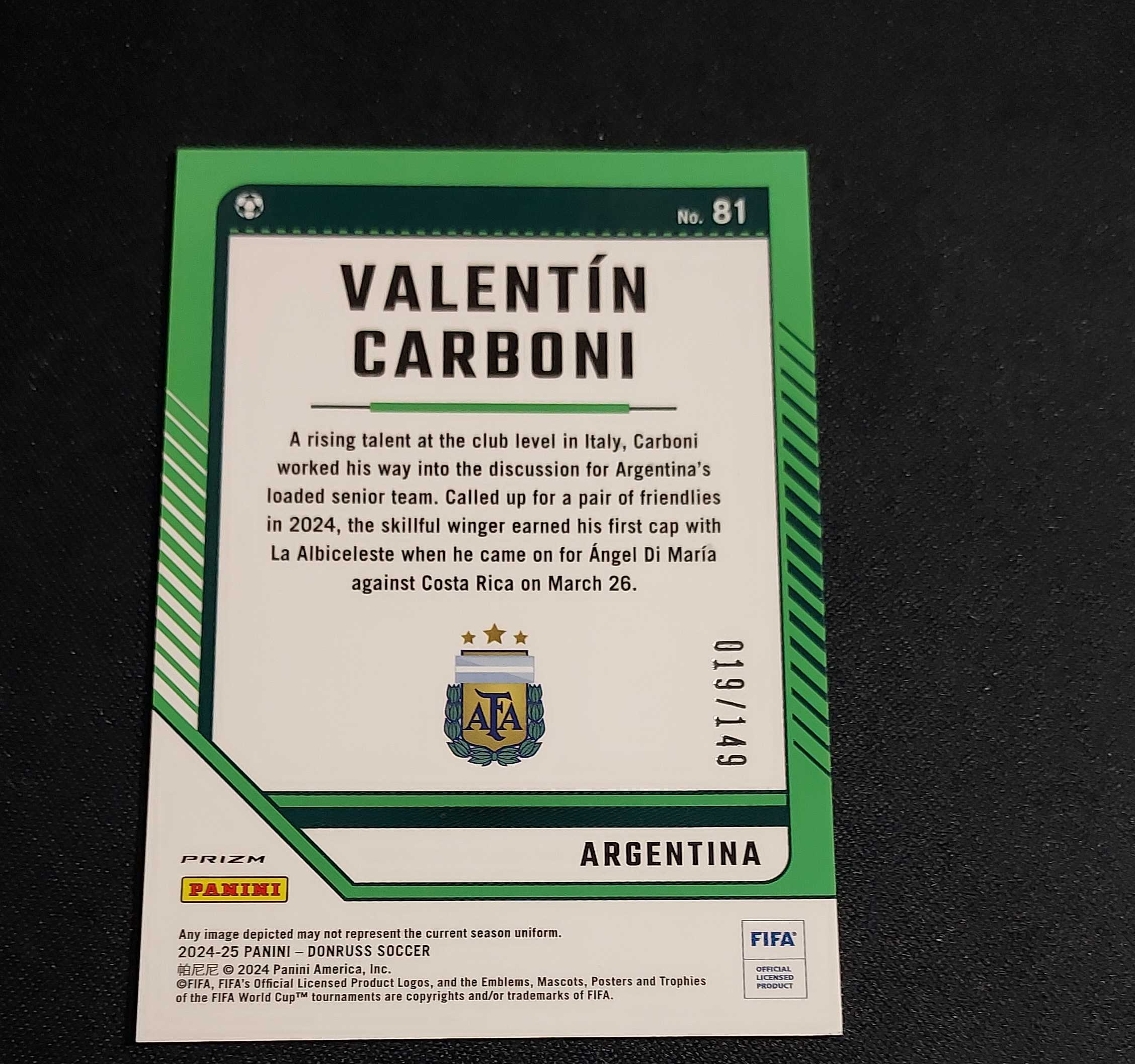 2024-25 Panini Donruss Optic Valentín Carboni 巴伦廷 卡尔博尼 阿根廷 19/149编 蓝折 折射 卡品如图 专收 收藏必备