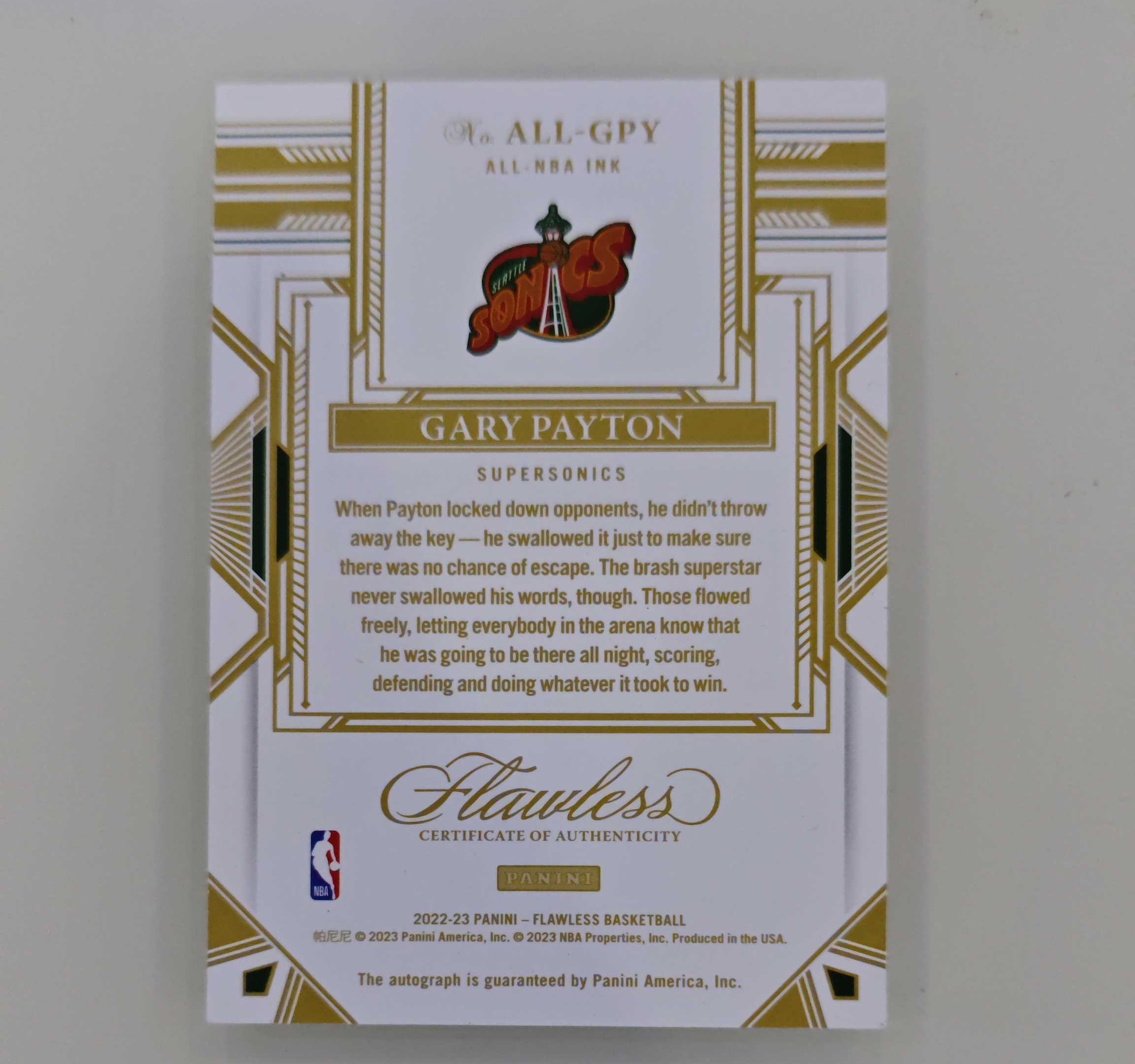 2022-23 Panini Flawless Gary Payton 手提系列 INK签 手套 加里佩顿10/25编 卡品如图 卡片精美收藏必备