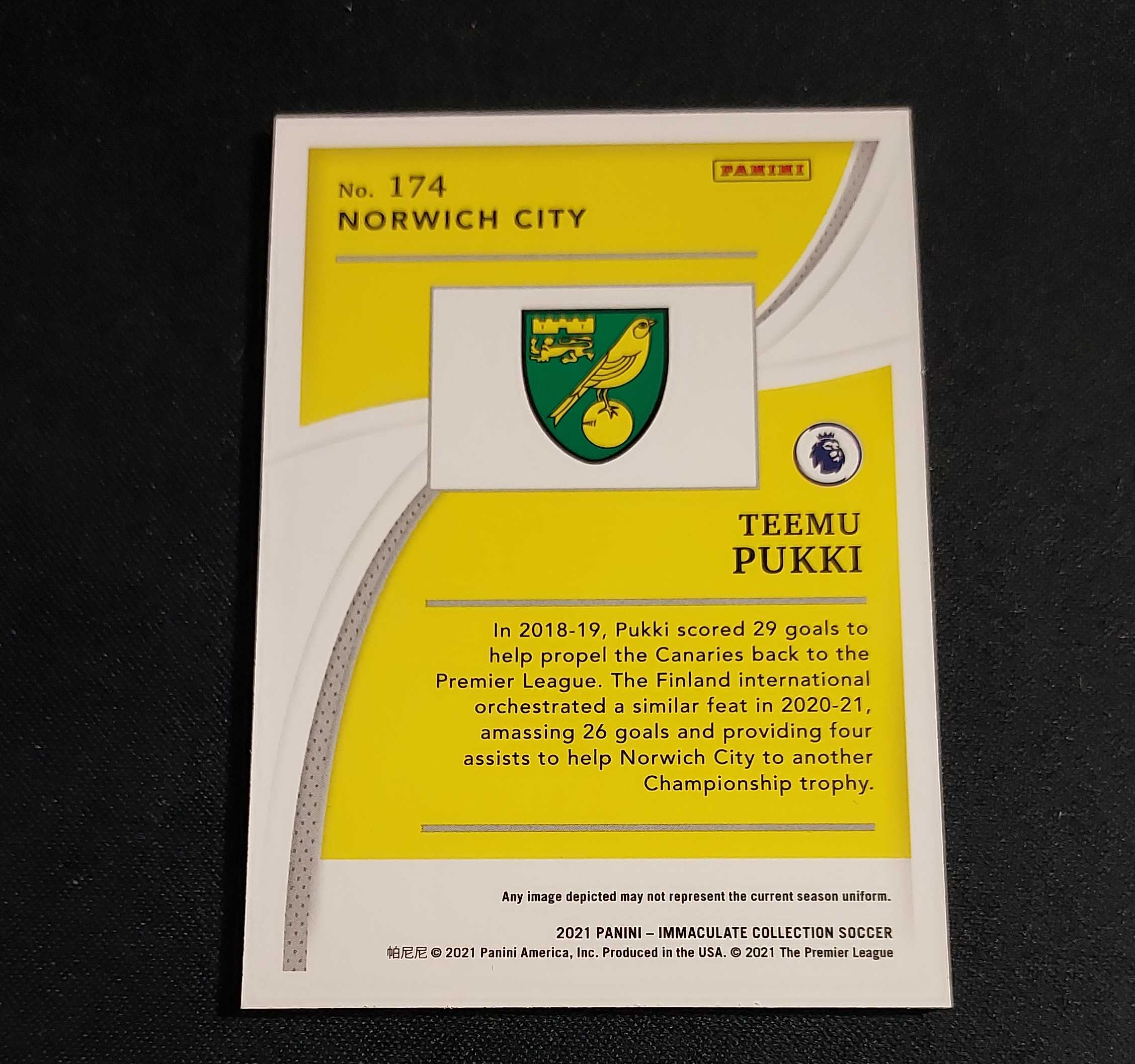 2021 Panini Immaculate Teemu Pukki 普基 诺维奇 21/49编 低编 - 卡品如图 专收 收藏必备