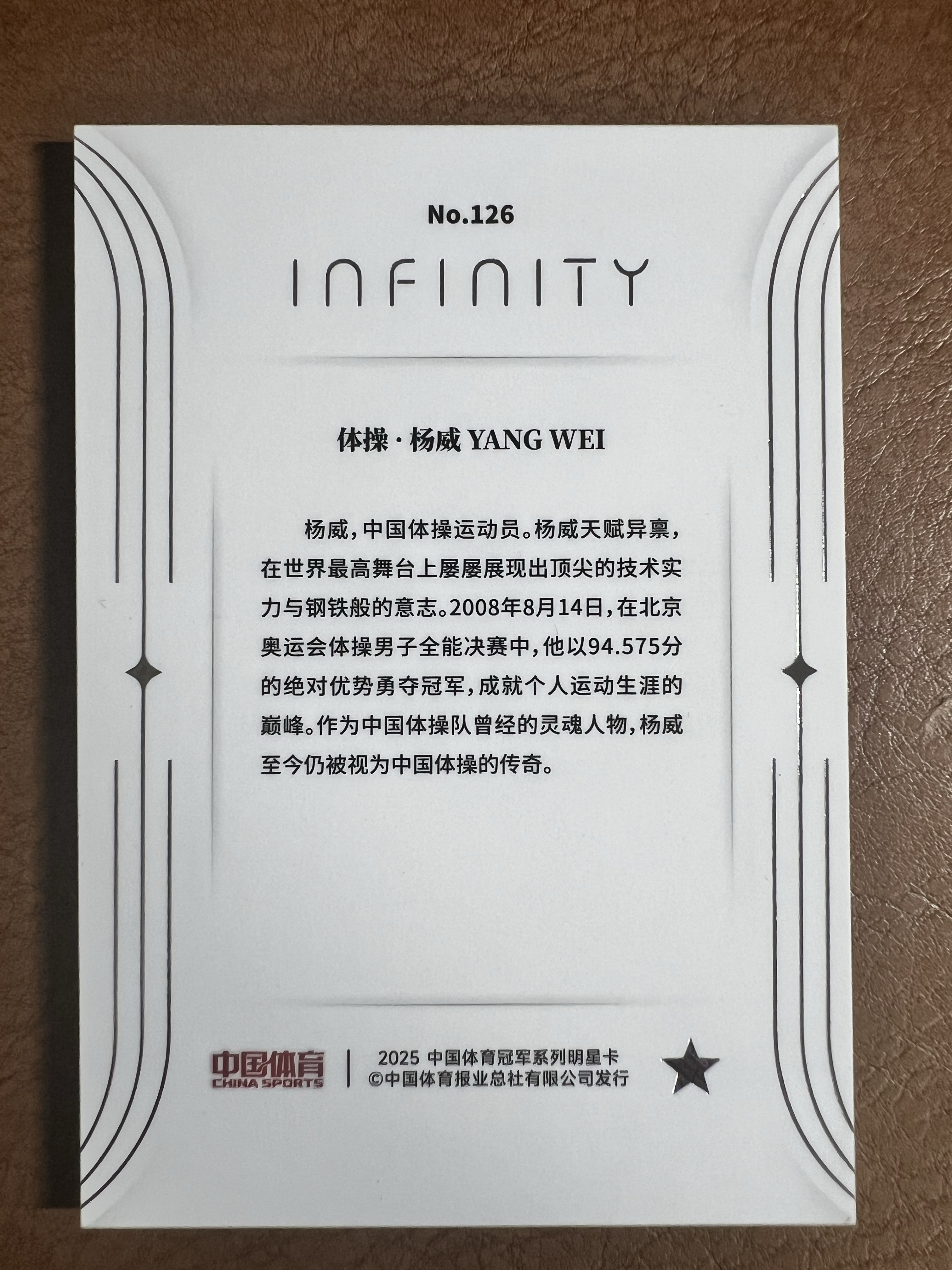 2025 奇卡 QICA 中国体育 无限 杨威 /泰欧气卡社/ 中体 Infinity 无限 体操 杨威 base 21/49编 卡品如图