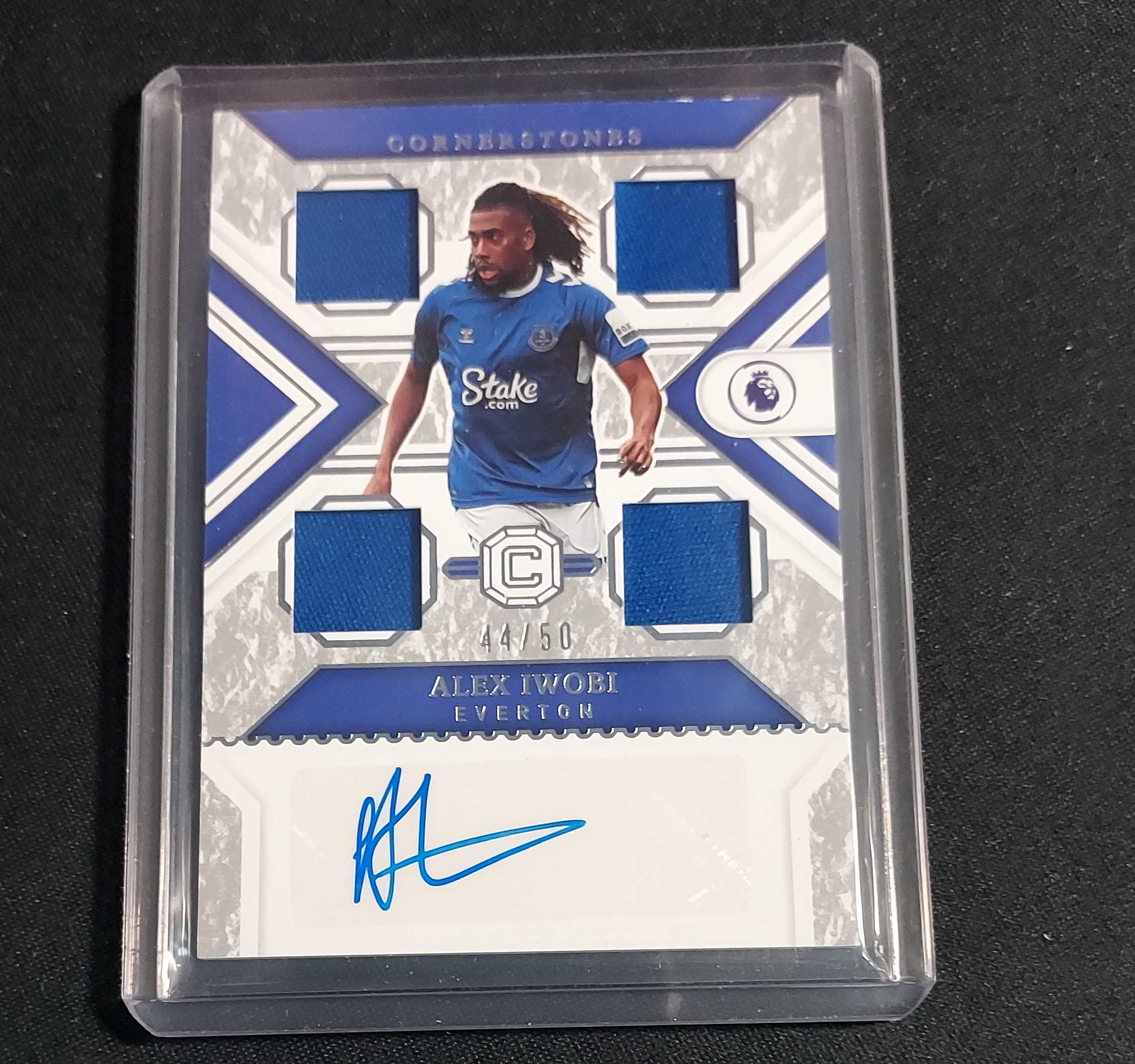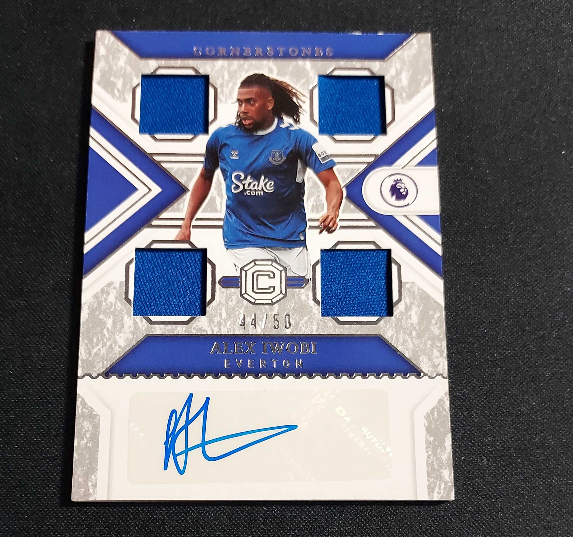 2022-23 Panini Chronicles Cornerstones Alex Iwobi 伊沃比 埃弗顿 44/50编 低编 物料切割 签字 卡品如图 专收 收藏必备