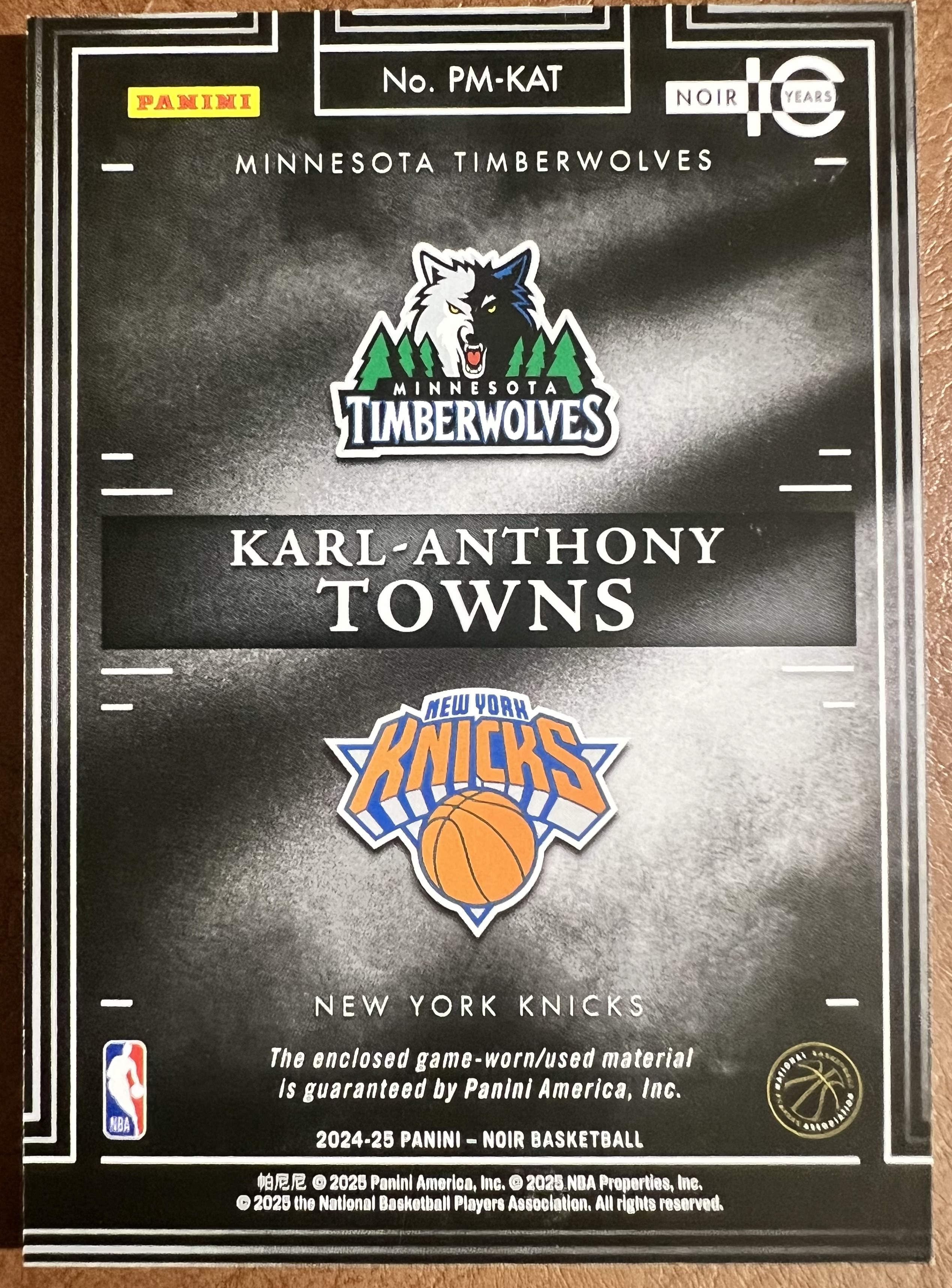 2024-25 Panini Noir Karl Anthony Towns /泰欧气卡社 / 诺尔 卡尔 安东尼 唐斯 GU落场 小窗球衣切割 06/99编 卡品如图