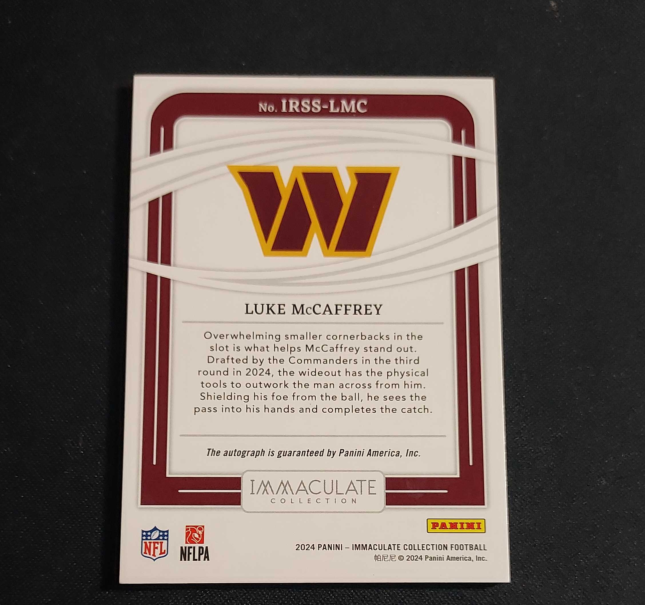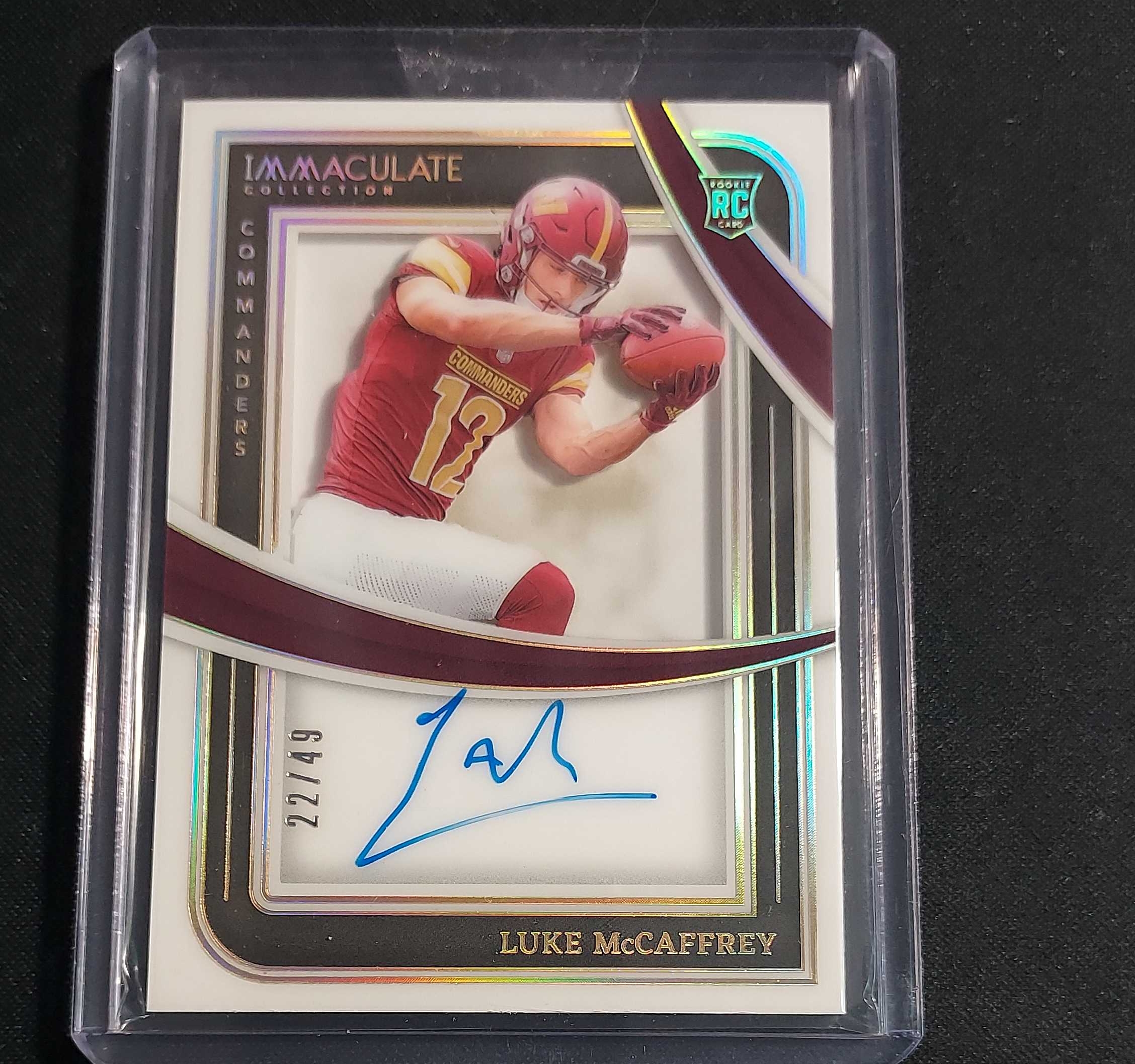2024 Panini Immaculate Luke McCaffrey RC 卢克 麦卡弗里 华盛顿指挥官 22/49编 低编 新秀 卡签 签字 卡品如图 专收 收藏必备