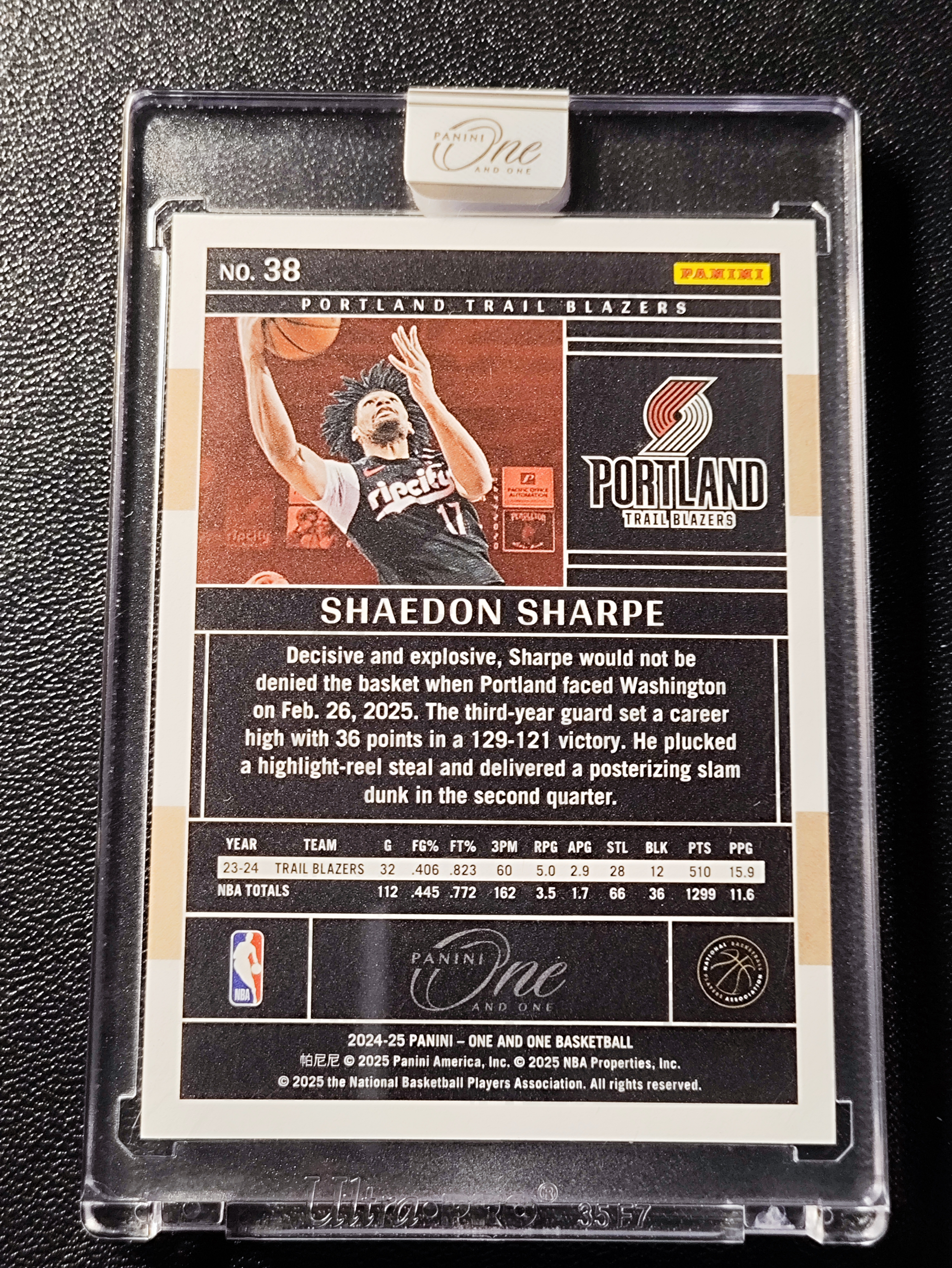 2024-25 Panini One and One Shaedon Sharpe OAO 波特兰开拓者 谢登 夏普 49编 超低编 橙平行 原封砖 选图超帅 杨瀚森斯科特亨德森克林根队友 收藏投资必备