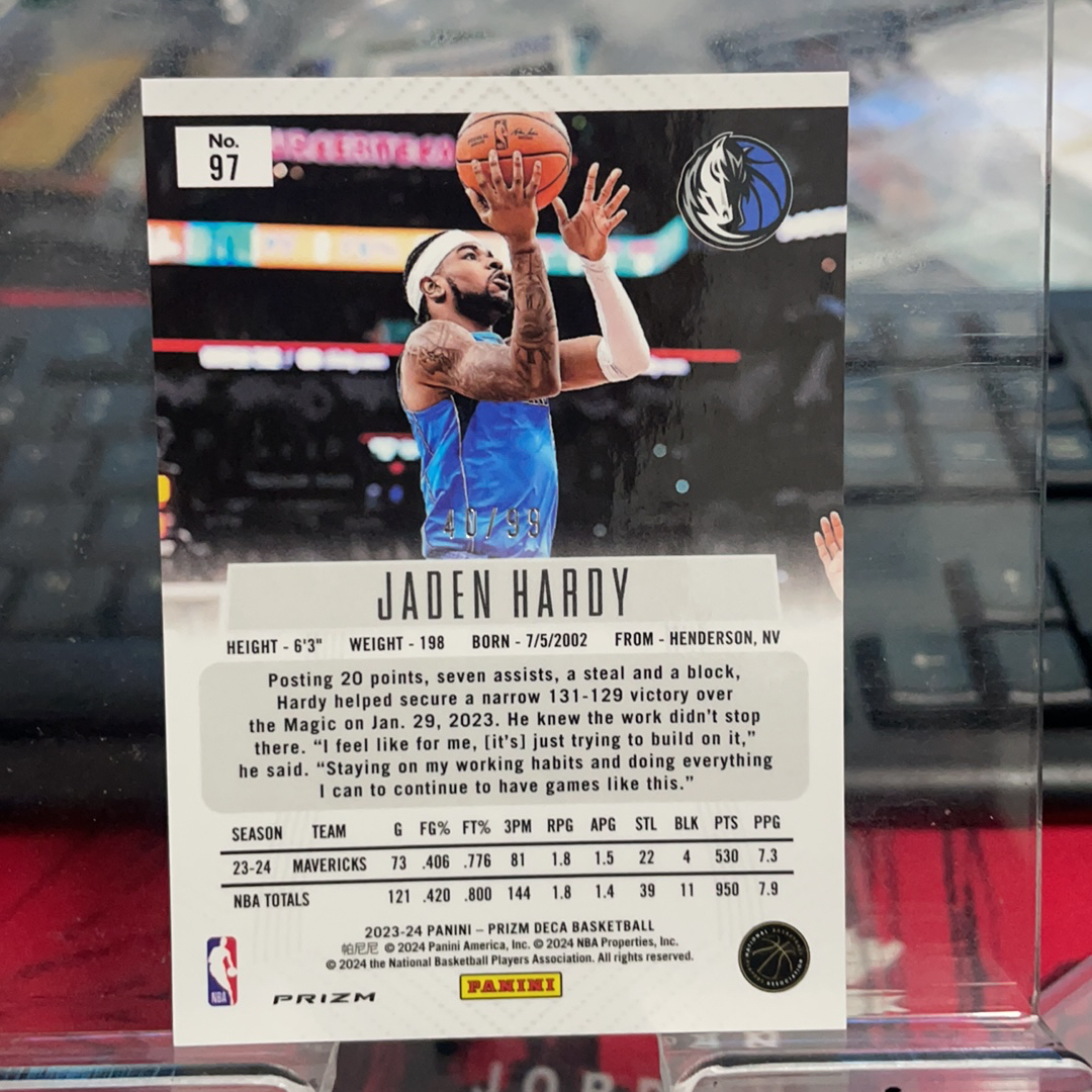 2023-24 Panini Prizm Jaden Hardy 帕尼尼 Prizm Deca Pz元年 复刻 独行侠 Jaden Hardy 杰登 哈迪 折射 紫折 99编 实卡精美 专收凑套必备