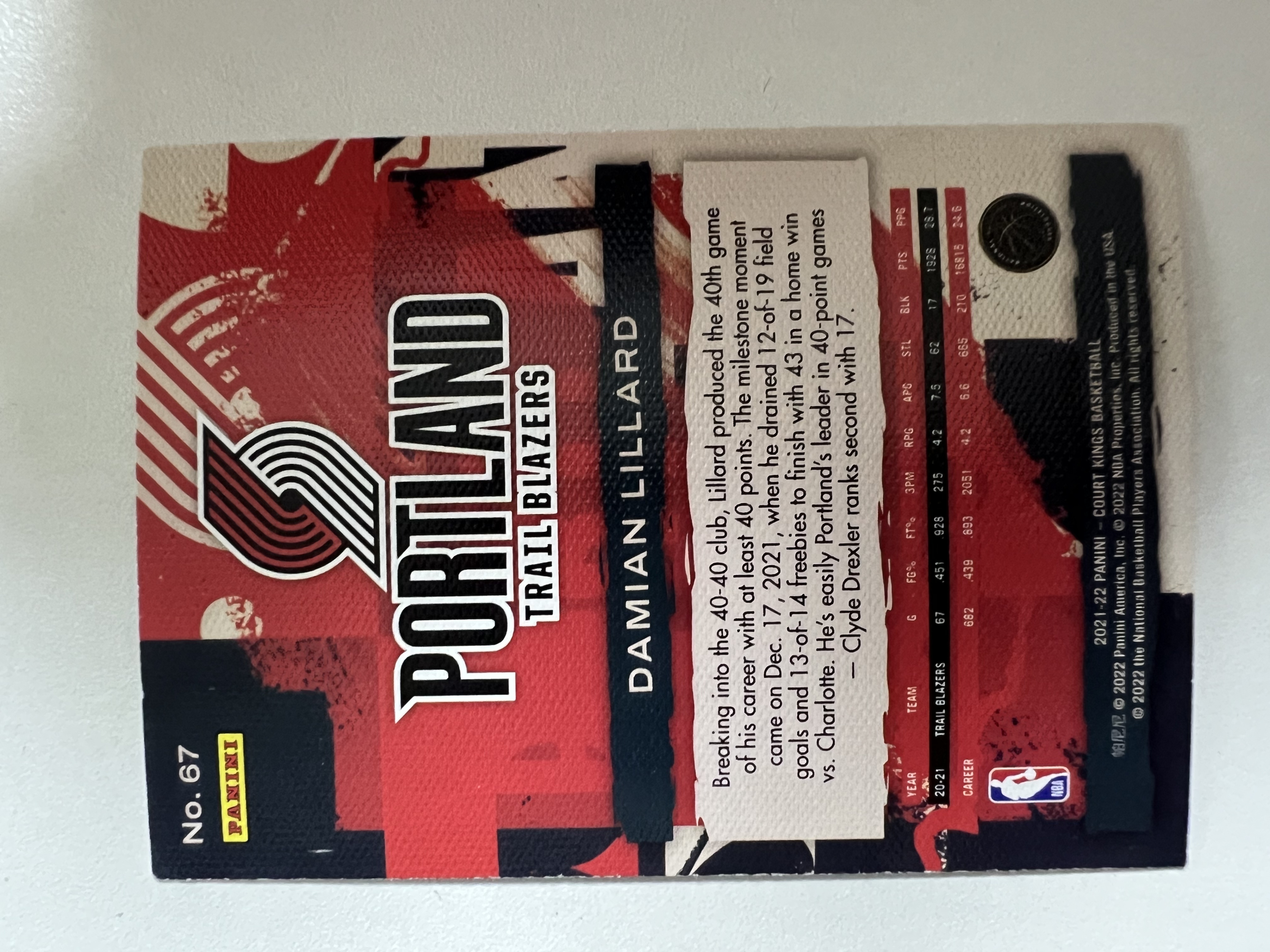 2021-22 Panini Court Kings Damian Lillard #67 达米安 利拉德 开拓者 油画 收藏凑套 卡品如图